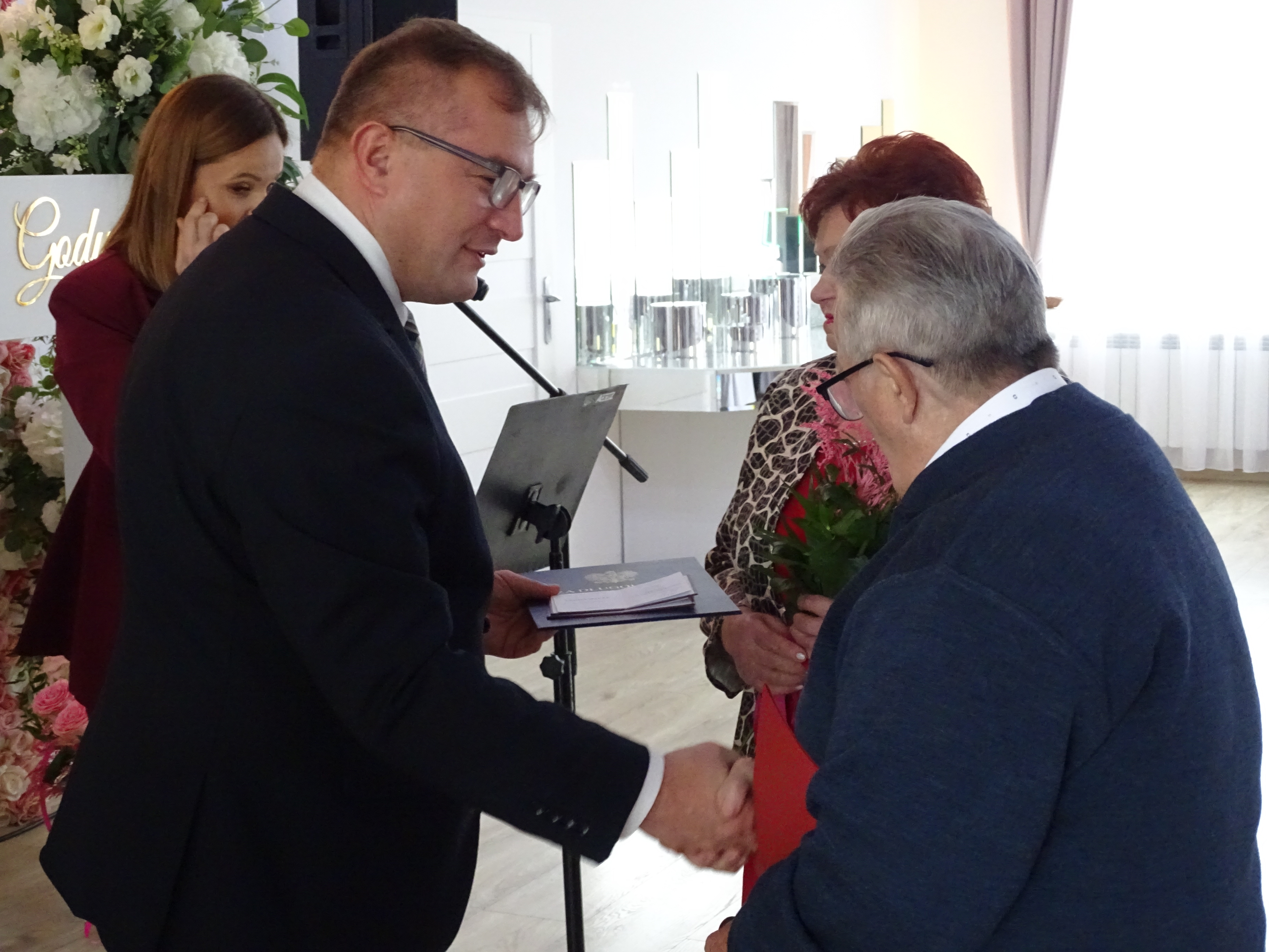 Życzenia i gratulacje w imieniu władz powiatu kozienickiego złożył Jubilatom starosta Krzysztof Wolski.