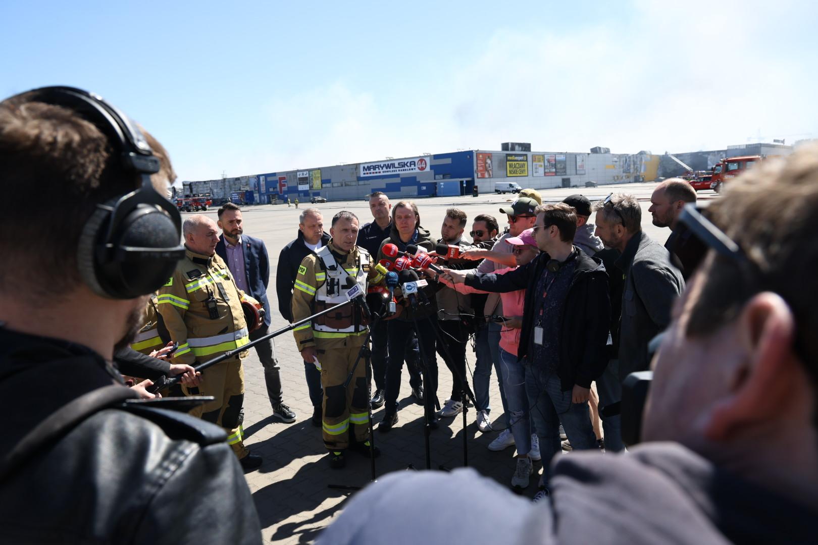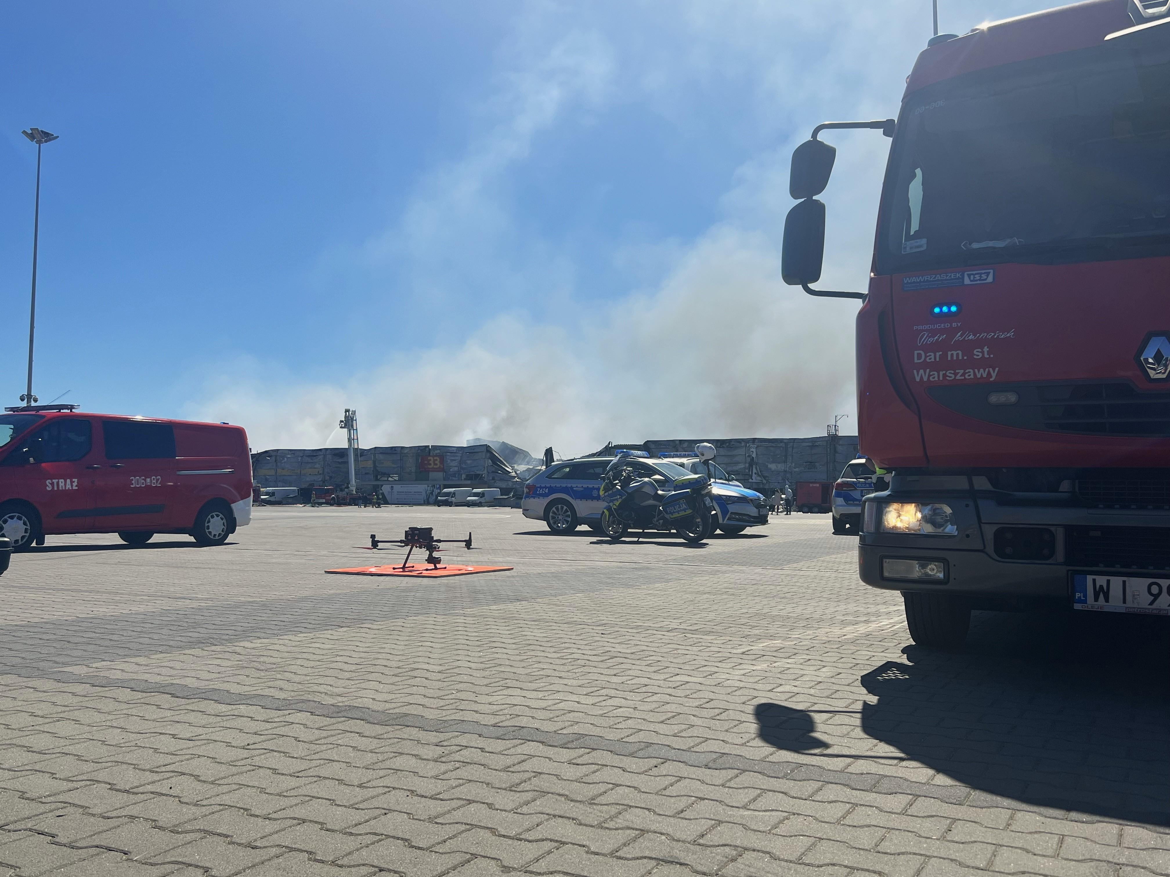 Trwa dogaszanie pożaru hali handlowej przy ul. Marywilskiej 44 w Warszawie. Na miejscu odbyło się posiedzenie sztabu kryzysowego z udziałem Wojewody Mazowieckiego Mariusza Frankowskiego. Działania prowadzone są w ścisłej współpracy z przedstawicielami służb oraz Ministerstwem Spraw Wewnętrznych i Administracji. Przypominamy, że nadal obowiązuje Alert Rządowego Centrum Bezpieczeństwa wydany dla mieszkańców Warszawy i powiatów: warszawskiego zachodniego, legionowskiego i nowodworskiego. Prowadzony jest monitoring jakości powietrza - obecnie nie wykazano istotnego podwyższenia stężenia pyłów zawieszonych.