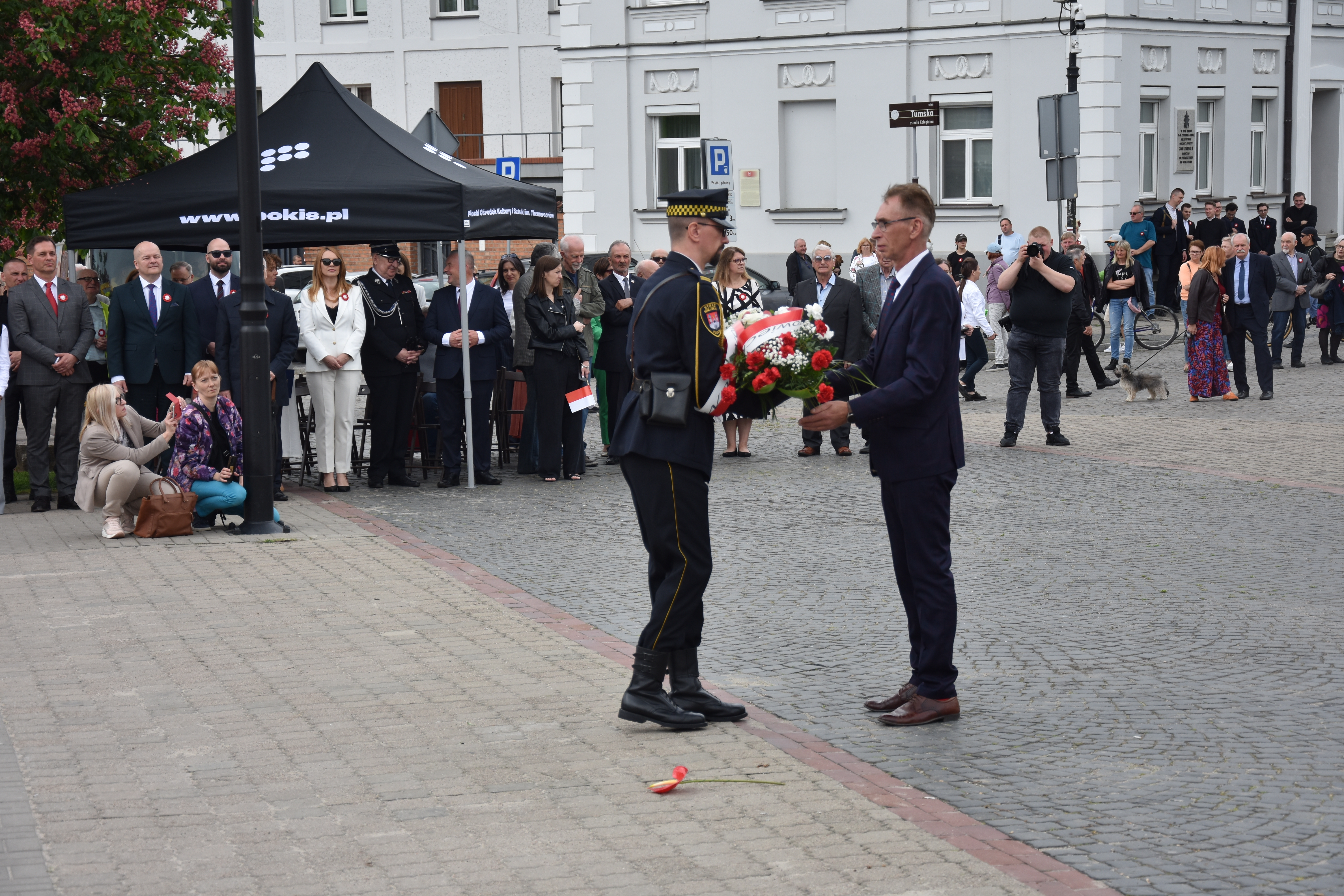 Uczestnicy obchodów przeszli w patriotycznym marszu pod Płytę Nieznanego Żołnierza na placu Narutowicza w Płocku. W imieniu wojewody mazowieckiego Mariusza Frankowskiego wiązankę złożył przedstawiciel Biura Wojewody. Kwiaty zostały również złożone pod pomnikiem Marszałka Józefa Piłsudskiego, który sąsiaduje z budynkiem Delegatury Mazowieckiego Urzędu Wojewódzkiego w Płocku. Oba gesty były wyrazem hołdu dla twórców Konstytucji oraz wszystkich, którzy przez wieki walczyli o wolną i suwerenną Polskę.