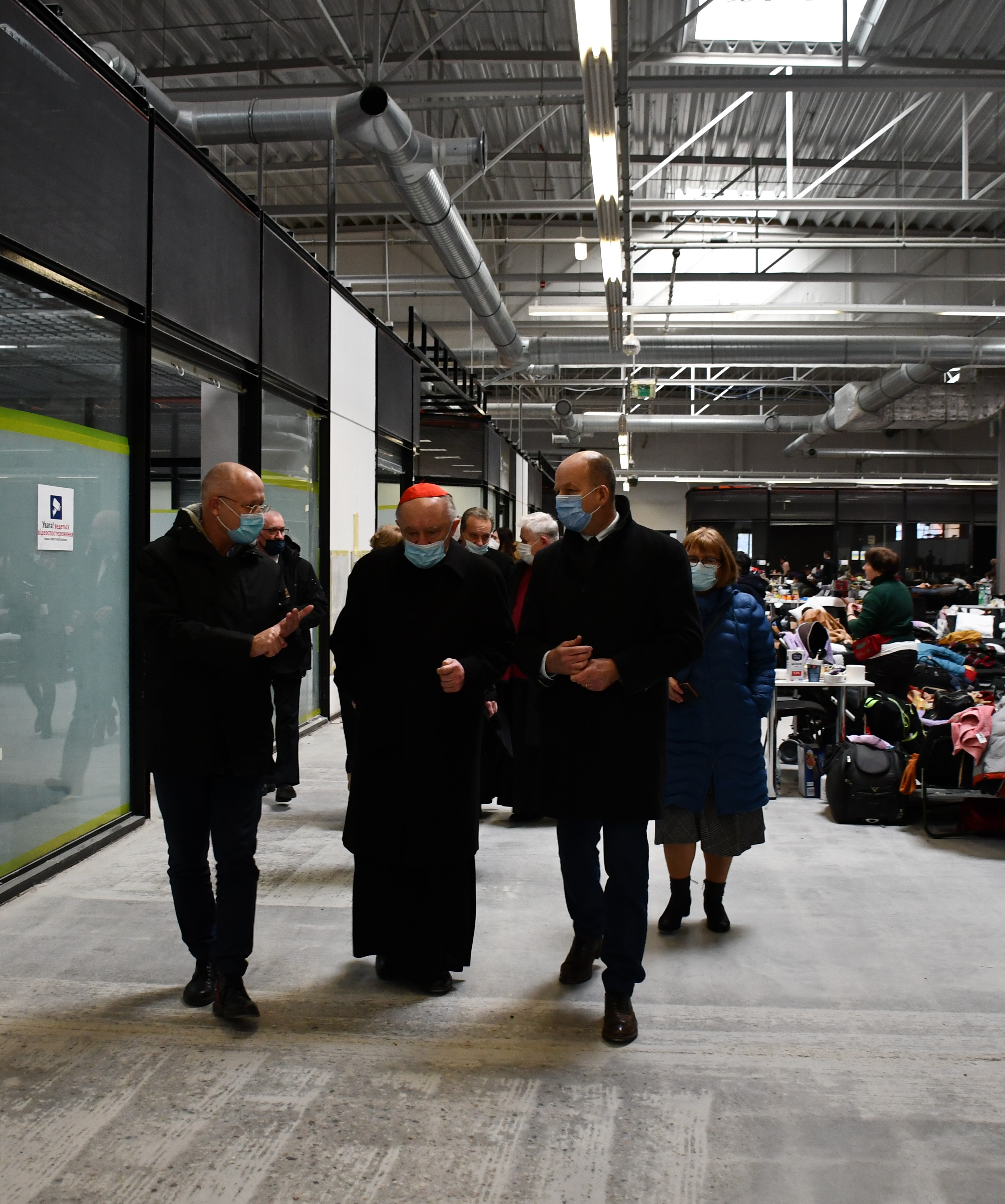 Wojewoda Mazowiecki Konstanty Radziwiłł oraz Prezes Ptak Warsaw Expo, w piątek 11 marca br. przyjęli JE Kardynała Kazimierza Nycza w największym obiekcie tymczasowego pobytu uchodźców z Ukrainy. Obiekt składa się z kilku ogromnych hal i funkcjonuje jako zaplecze punktów recepcyjnych. Obecnie w obiekcie przebywa prawie 7 tysięcy osób.