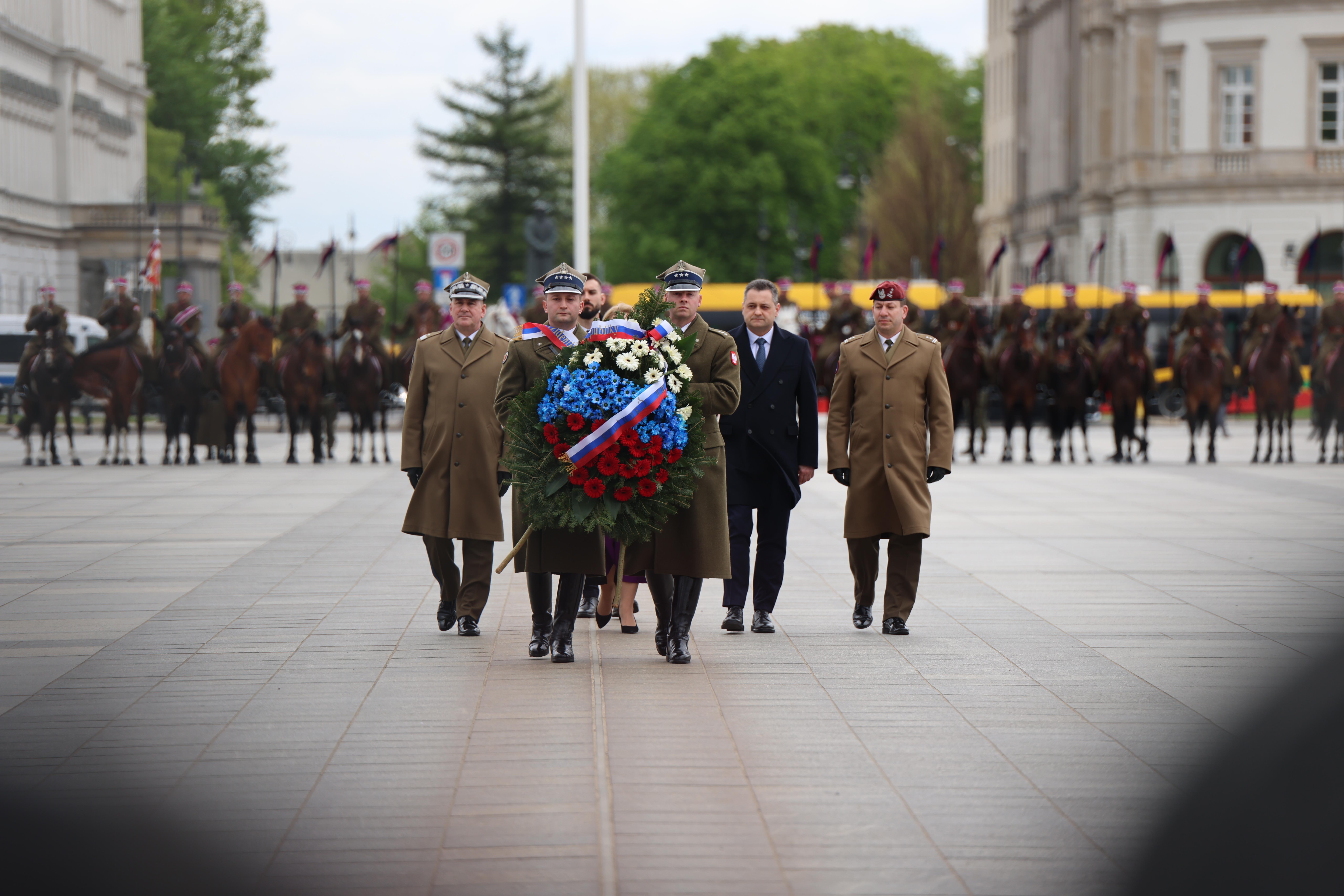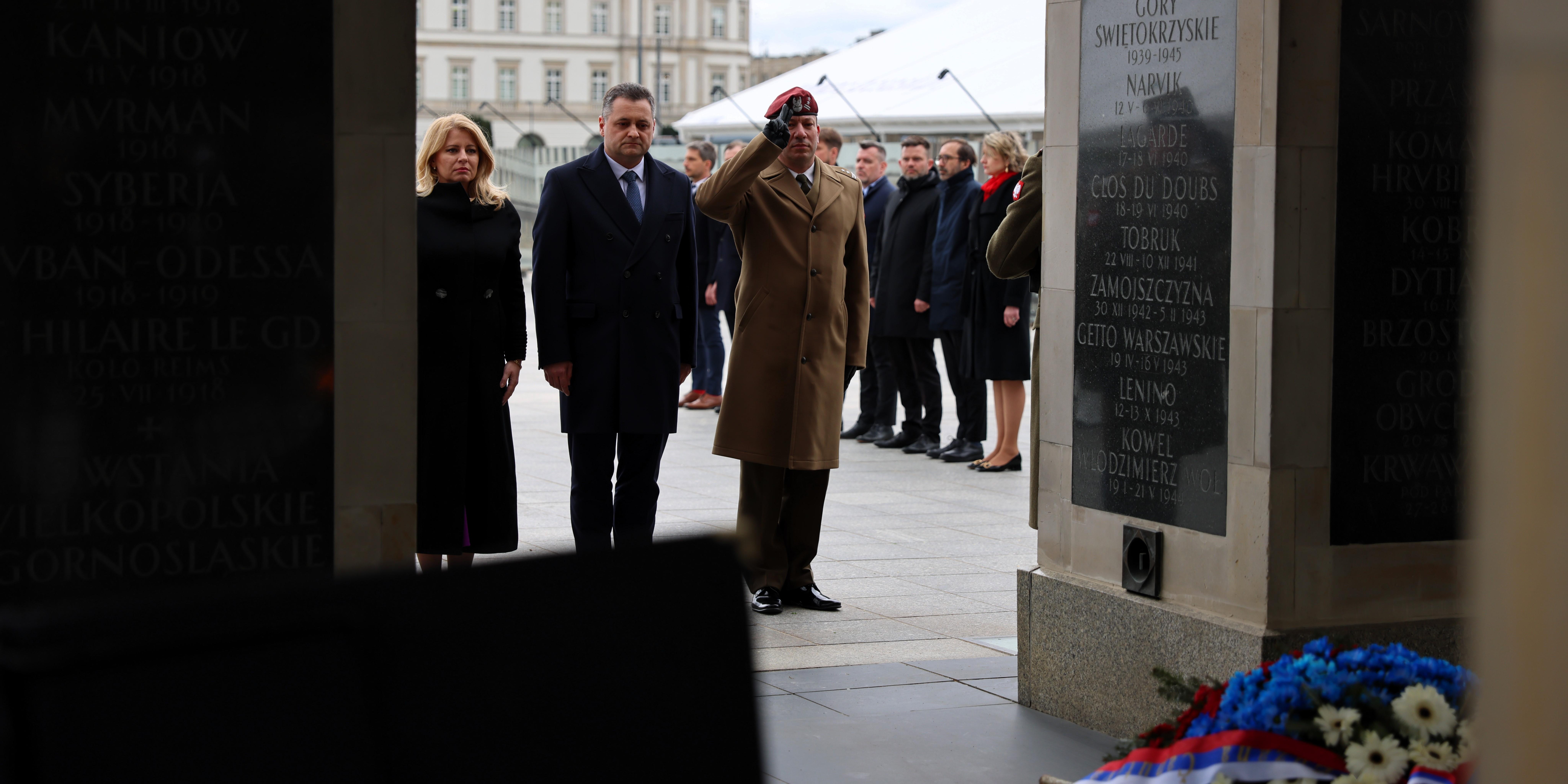 Następnie na ceremonii złożenia wieńca przez Prezydent Republiki Słowackiej Zuzany Čaputovej przy Grobie Nieznanego Żołnierza udział wziął Wojewoda Mazowiecki Mariusz Frankowski.