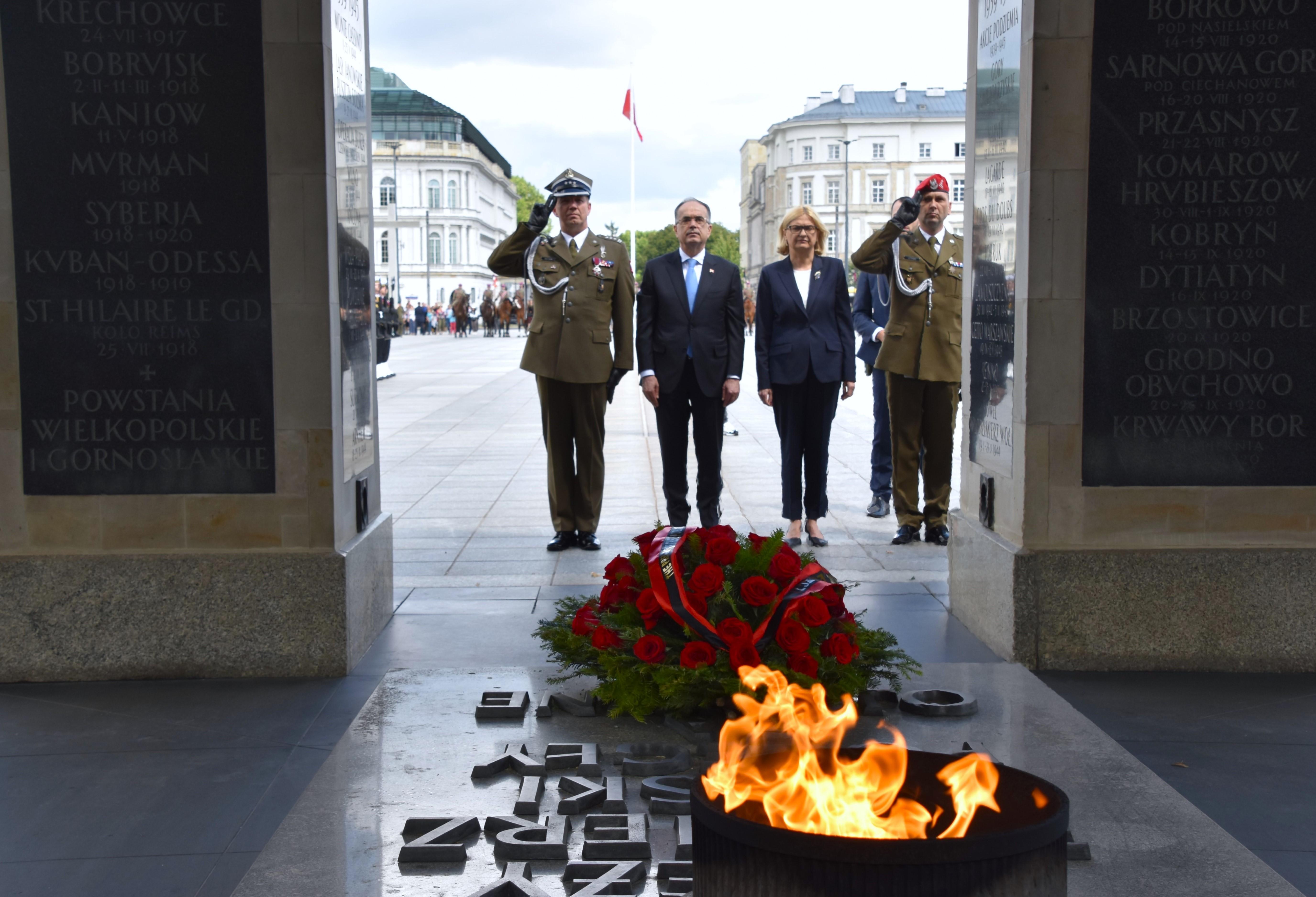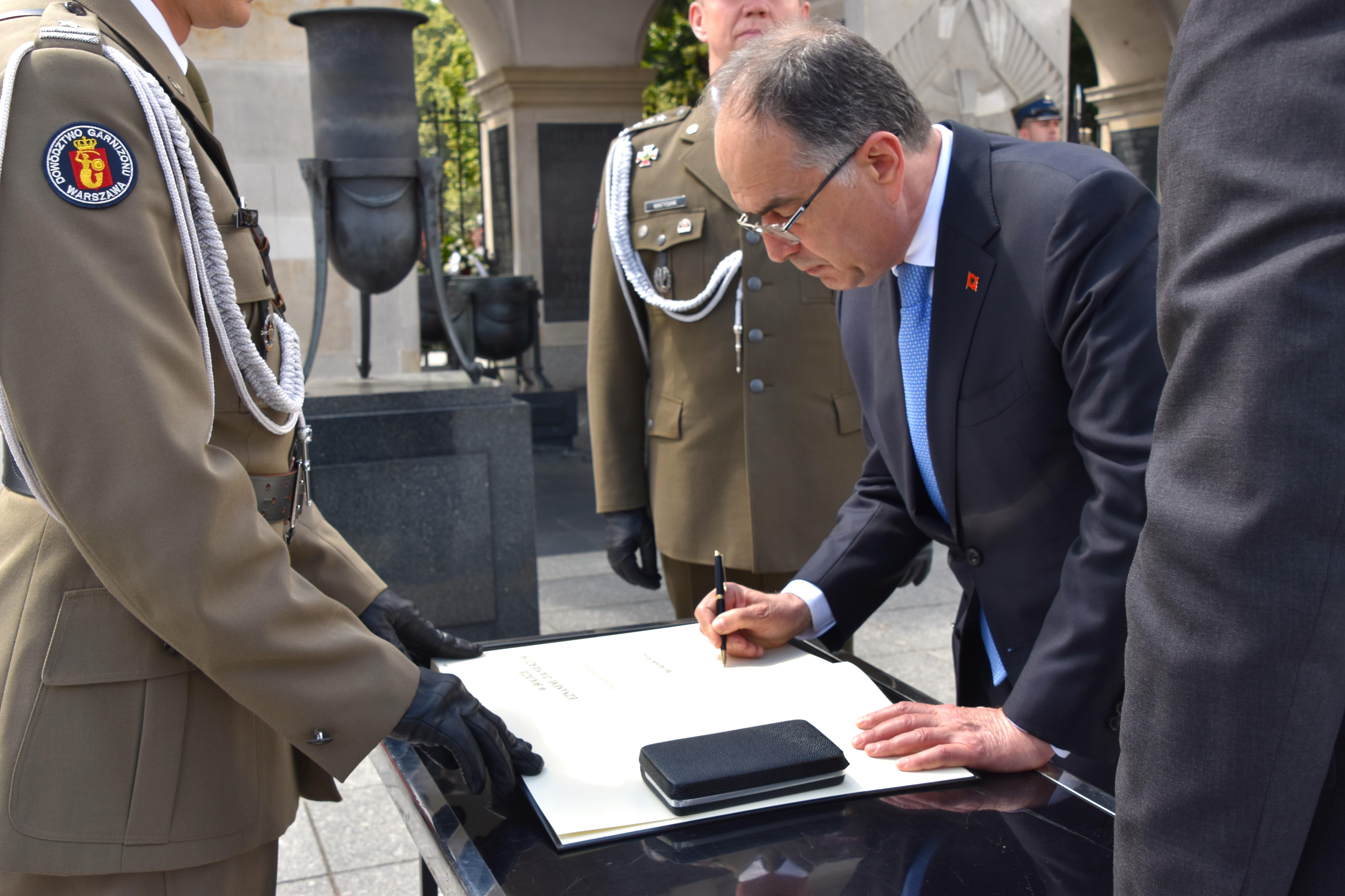 Prezydent RP Andrzej Duda powitał na dziedzińcu Belwederu Prezydenta Republiki Albanii Bajrama Begaja. W ceremonii uczestniczył również Wicewojewoda Mazowiecki Robert Sitnik, który później wziął udział w ceremonii złożenia wieńca przez Prezydenta Republiki Albanii przed Grobem Nieznanego Żołnierza.