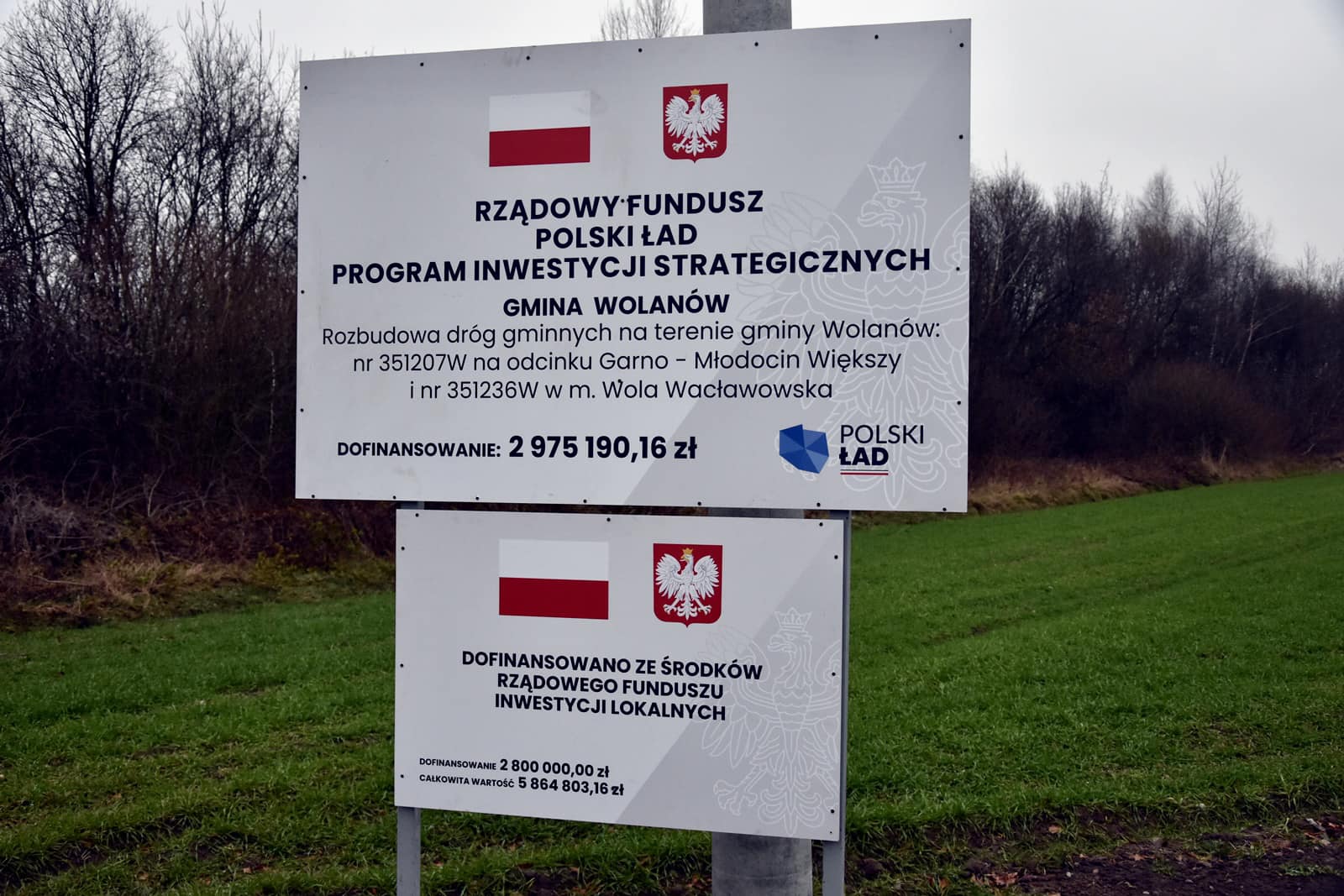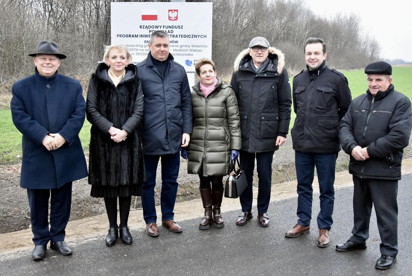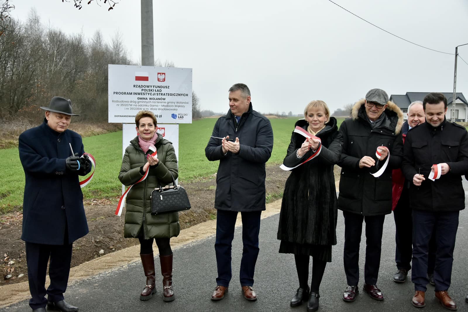 Podczas swojej wizyty Wicewojewoda wziął udział również, w gminie Wolanów, w uroczystym otwarciu inwestycji drogowych. W skład zrealizowanych przedsięwzięć weszły: rozbudowa drogi gminnej nr 351207W na odcinku Garno – Młodocin Większy oraz rozbudowa drogi gminnej nr 351236W w miejscowości Wola Wacławowska. W ramach pierwszej rozbudowy: powstał odcinek drogi o długości 1,8 km, wykonano jezdnię, pobocze, oświetlenie, kanał technologiczny, odwodnienie, oznakowanie oraz przejście dla pieszych. Wartość inwestycji to ponad 5 mln zł, z czego dofinansowanie z Polskiego Ładu stanowiło ponad 58 proc. tej kwoty, zaś z Rządowego Funduszu Inwestycji Lokalnych ponad 40 proc.