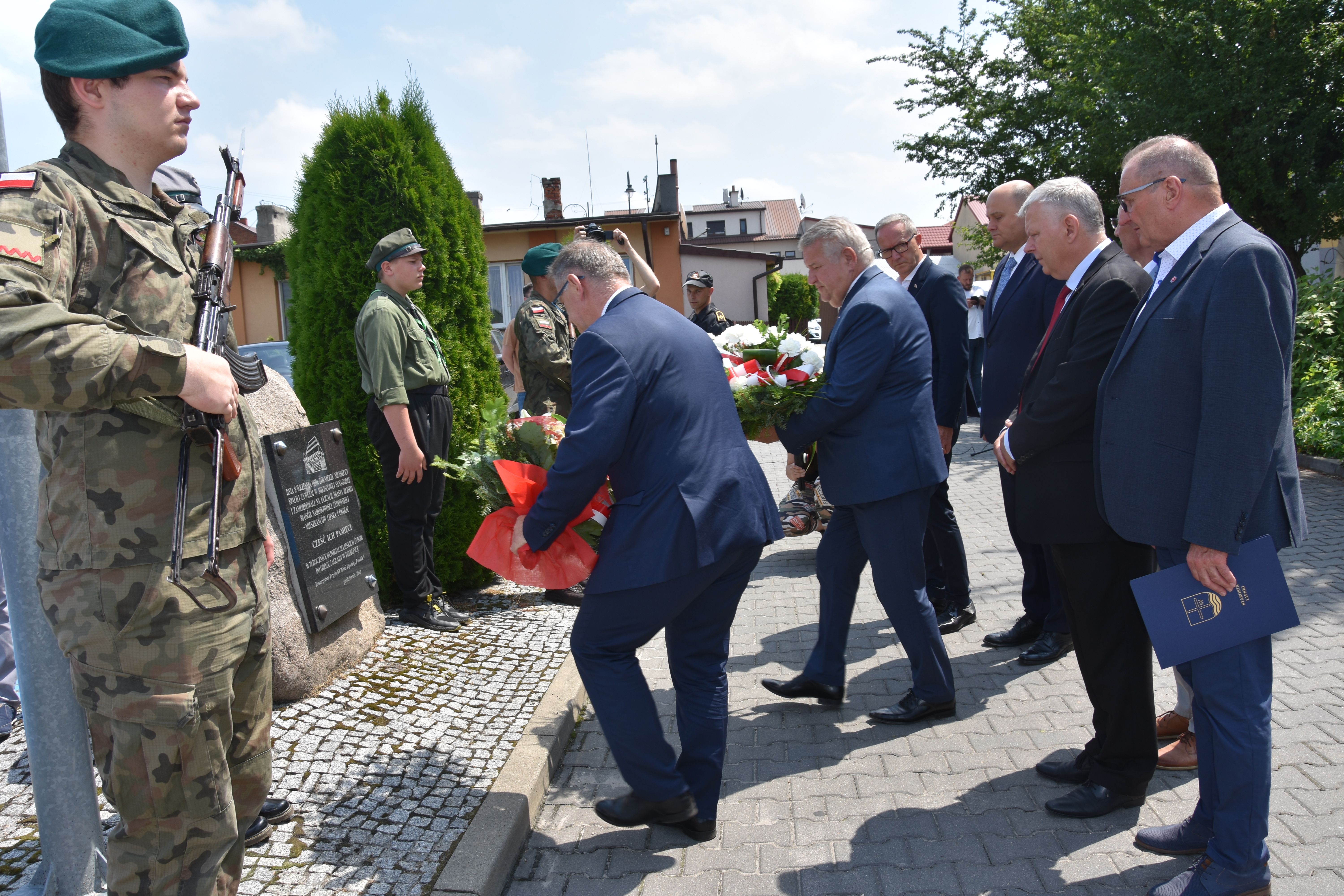 W trakcie spotkania Wicewojewoda złożył wieniec przy kamieniu pamięci pomordowanych Żydów.