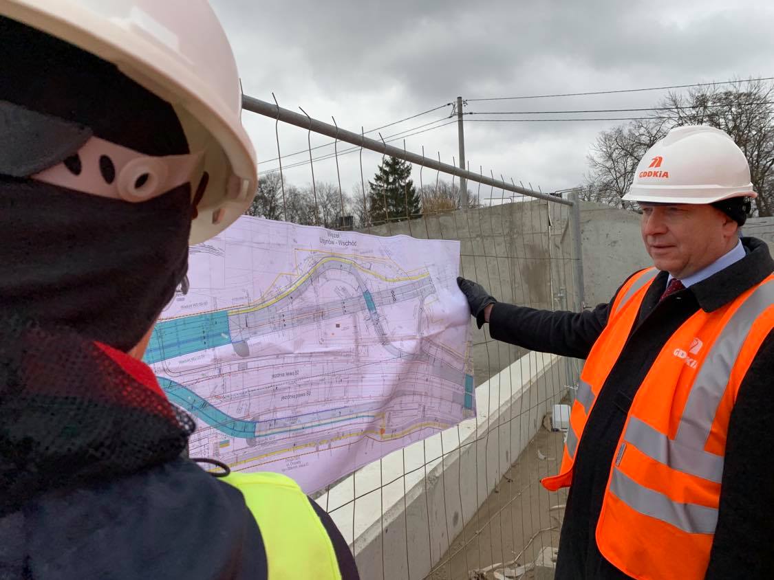 W środę, 12 lutego br. Wojewoda Mazowiecki Konstanty Radziwiłł wraz z p.o. Dyrektora Oddziału GDDKiA w Warszawie Jarosławem Wąsowskim oraz p.o. Zastępcy Regionalnego Dyrektora Ochrony Środowiska w Warszawie - Regionalnego Konserwatora Przyrody, Arkadiuszem Malcem odwiedził budowę realizowanego na warszawskim Ursynowie fragmentu drogi ekspresowej S2 – Południowej Obwodnicy Warszawy. Wizyta była okazją do spotkania się z przedstawicielami Generalnej Dyrekcji Dróg Krajowych i Autostrad i zapoznania się z postępem prac nad inwestycją.