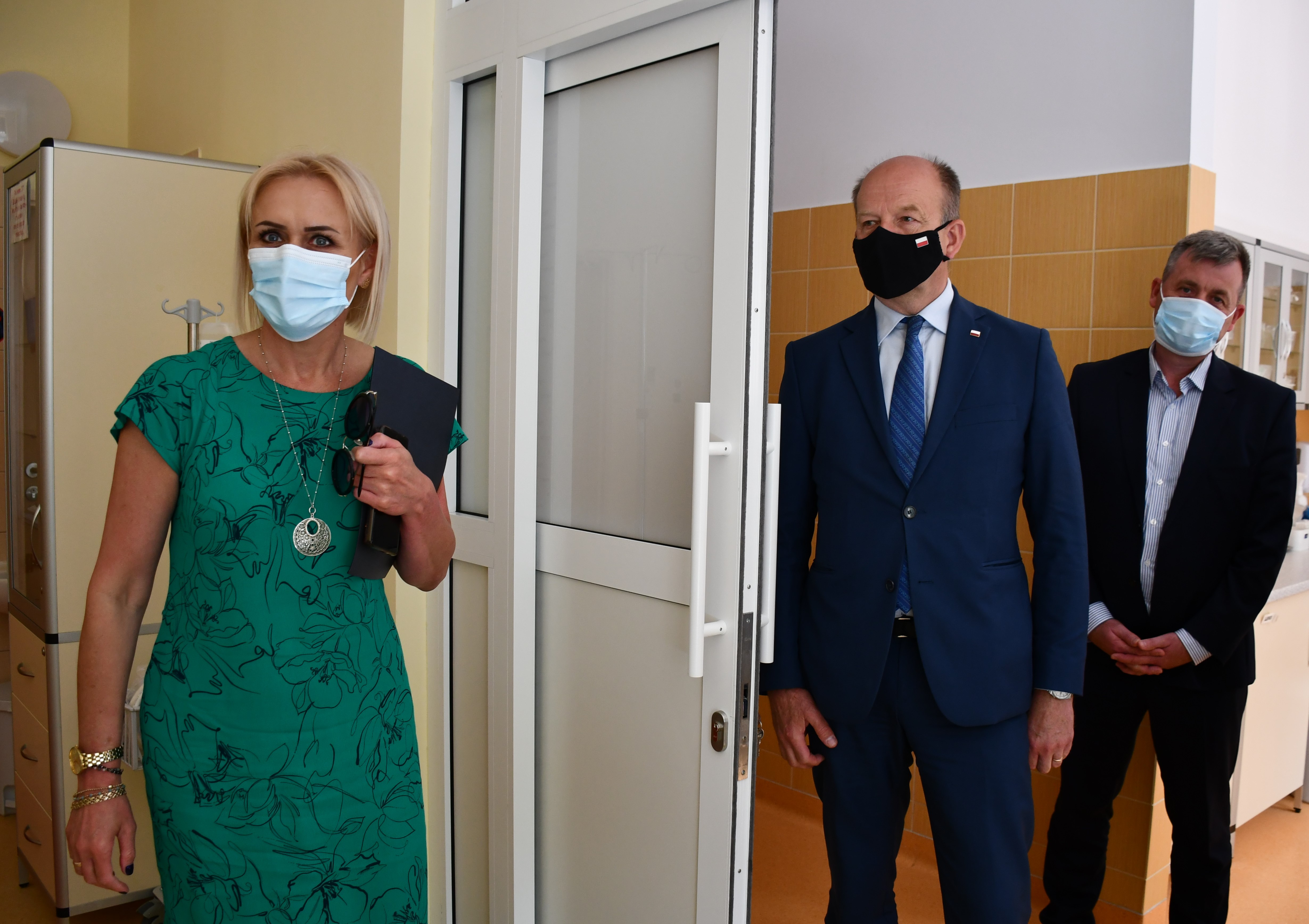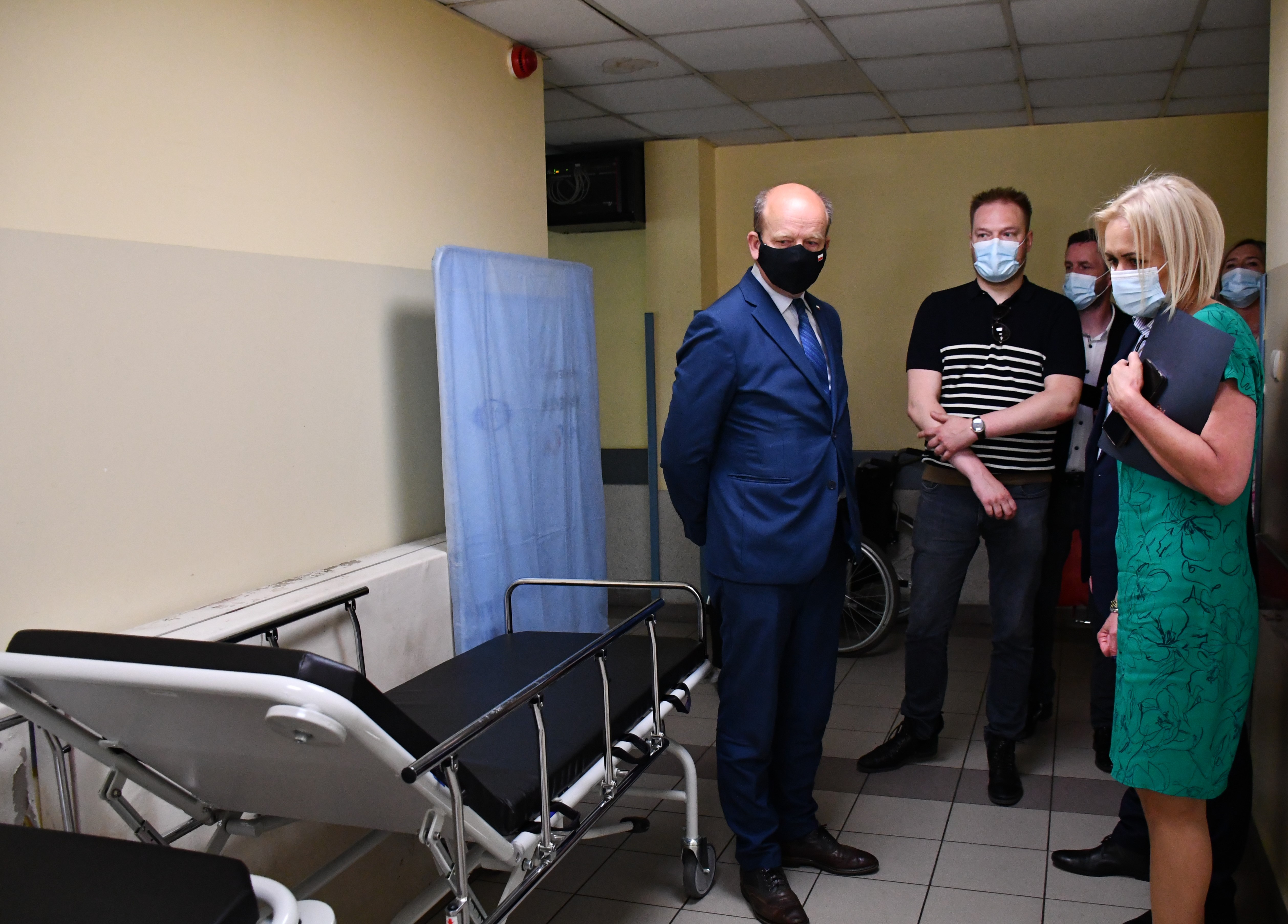 Następnie Wojewoda Mazowiecki odwiedził Samodzielny Publiczny Zespół Zakładów Opieki Zdrowotnej, który dzięki środkom z Funduszu Przeciwdziałania COVID-19 został wyposażony m.in. w nosze bariatryczne, aparaty do wysokoprzepływowej terapii tlenowej, wannę z podnośnikiem kąpielowo-transportowym, lampy bakteriobójcze, wózki anestezjologiczne, koncentrator tlenu. Zostały również wykonane przesłony. Łączne dofinansowanie wyniosło ponad 1 mln zł. Spotkaniu w SPZZOZ towarzyszyła konferencja prasowa, w której wzięli udział m.in. mgr Lilianna Kraśniewska Dyrektor SPZZOZ w Płońsku i Bartosz Fiałek Dyrektor ds. Medycznych SPZZOZ.