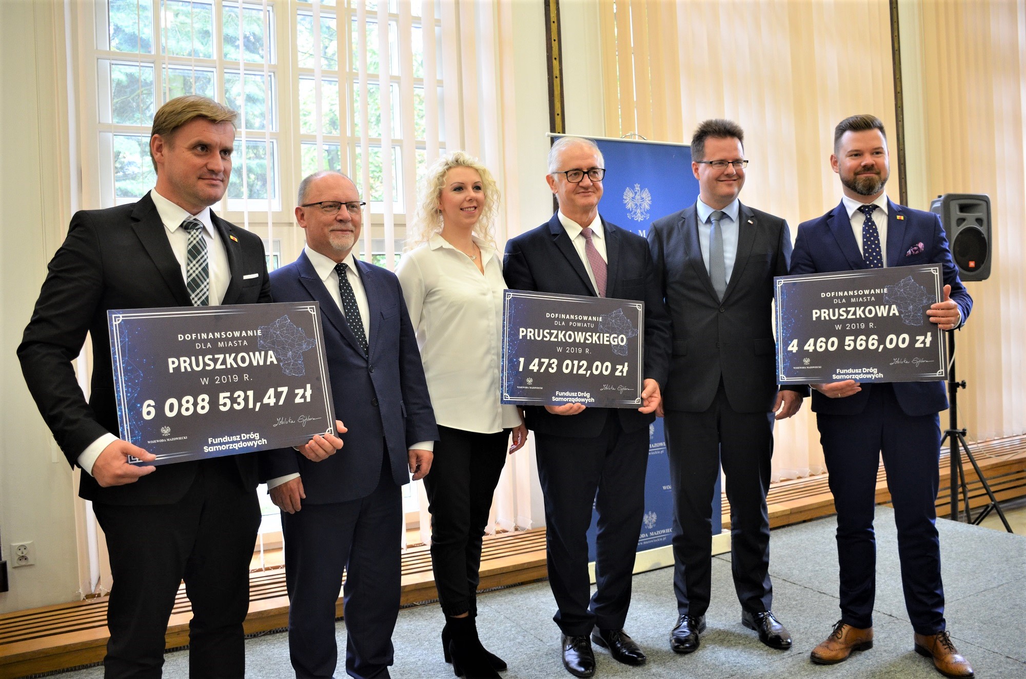 Samorządy z powiatu pruszkowskiego otrzymały symboliczne czeki na dofinansowanie w ramach Funduszu Dróg Samorządowych. Wiceminister Infrastruktury Andrzej Bittel i Wojewoda Mazowiecki Zdzisław Sipiera przekazali promesy na łączną kwotę ponad 20 mln zł.