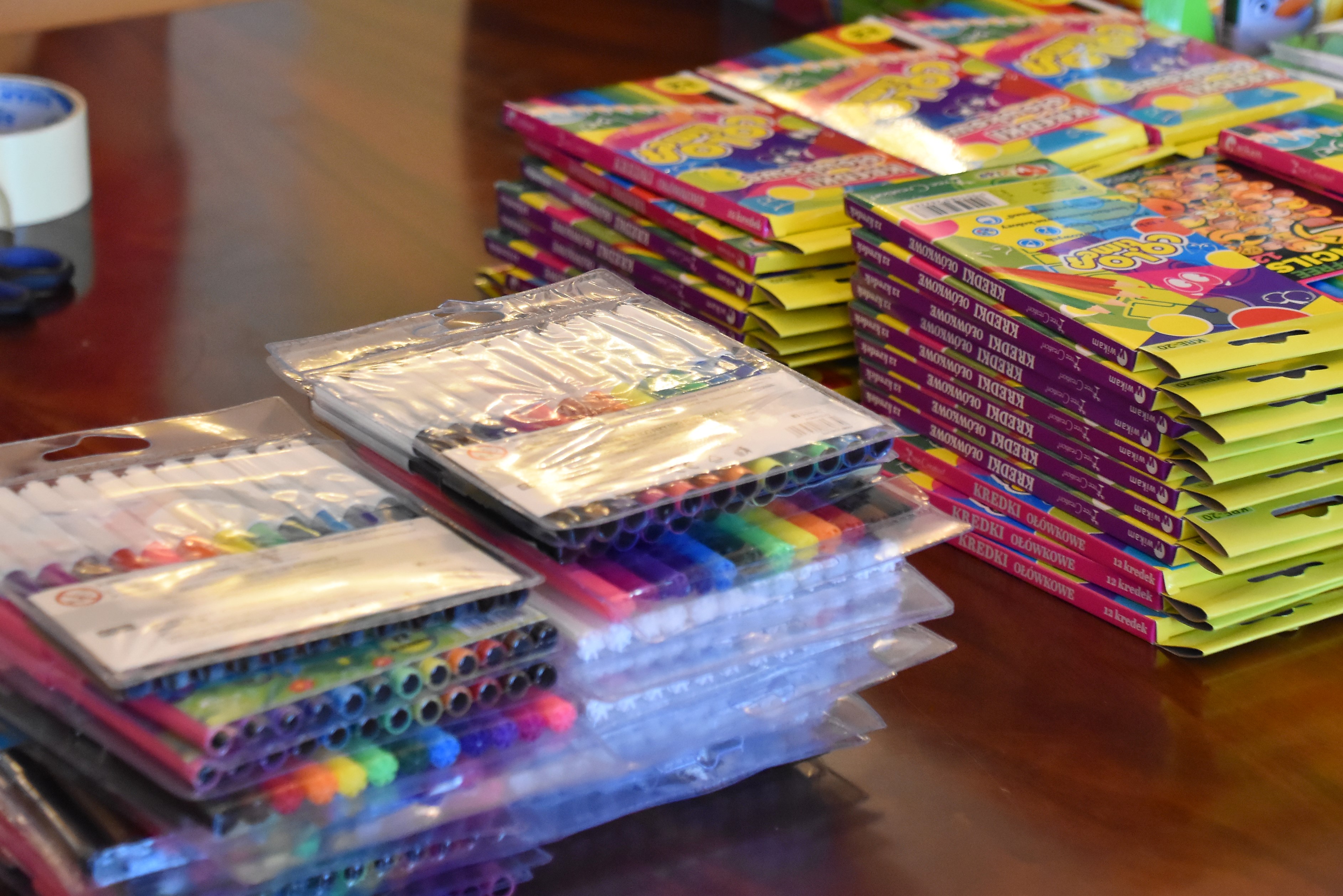 Matki z dziećmi mieszkające w ośrodku na Targówku otrzymały paczki, w których znalazły się artykuły spożywcze: kaszki, soki i musy dla dzieci oraz artykuły papiernicze: bloki, kredki, flamastry, farbki.
