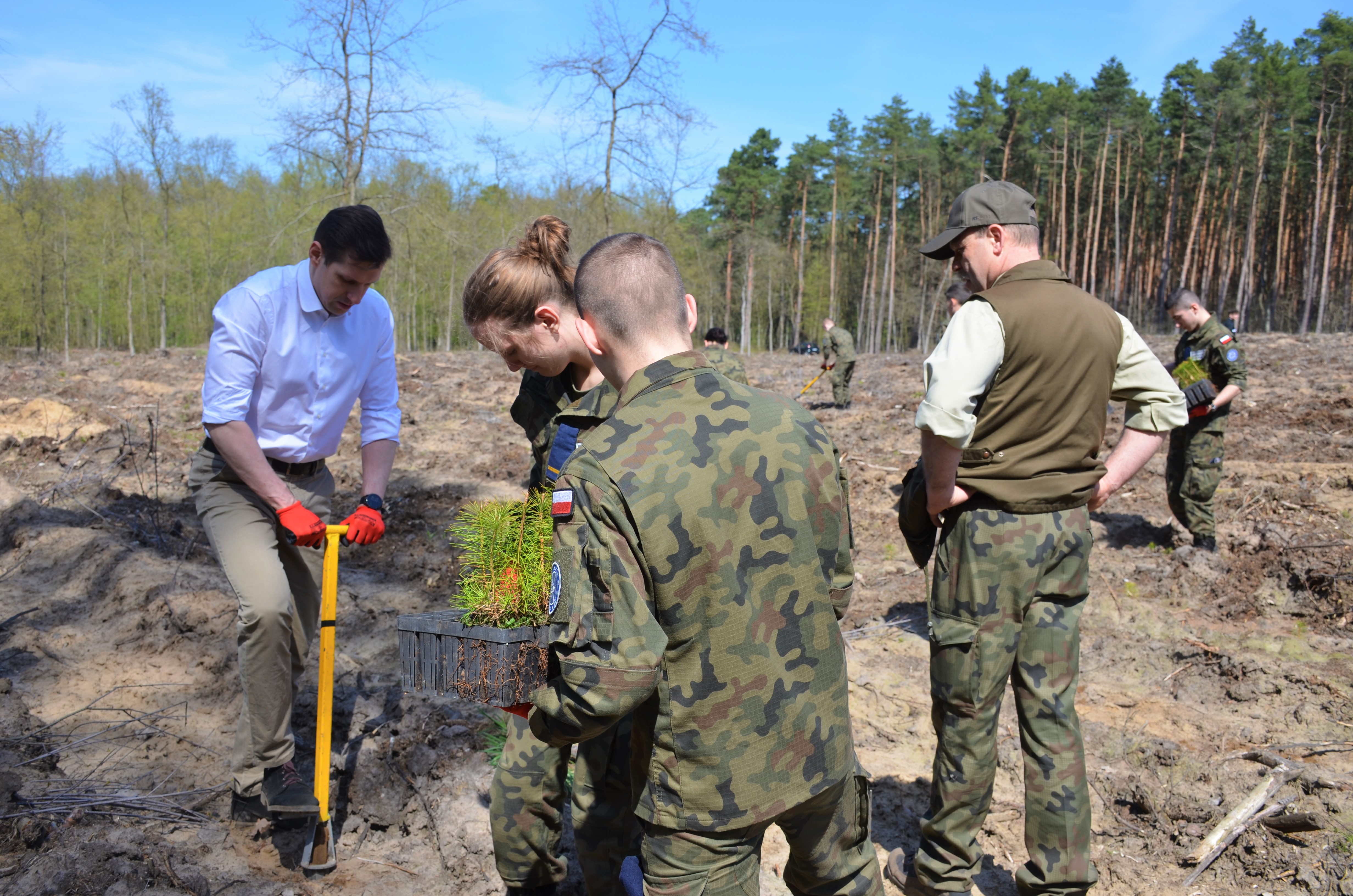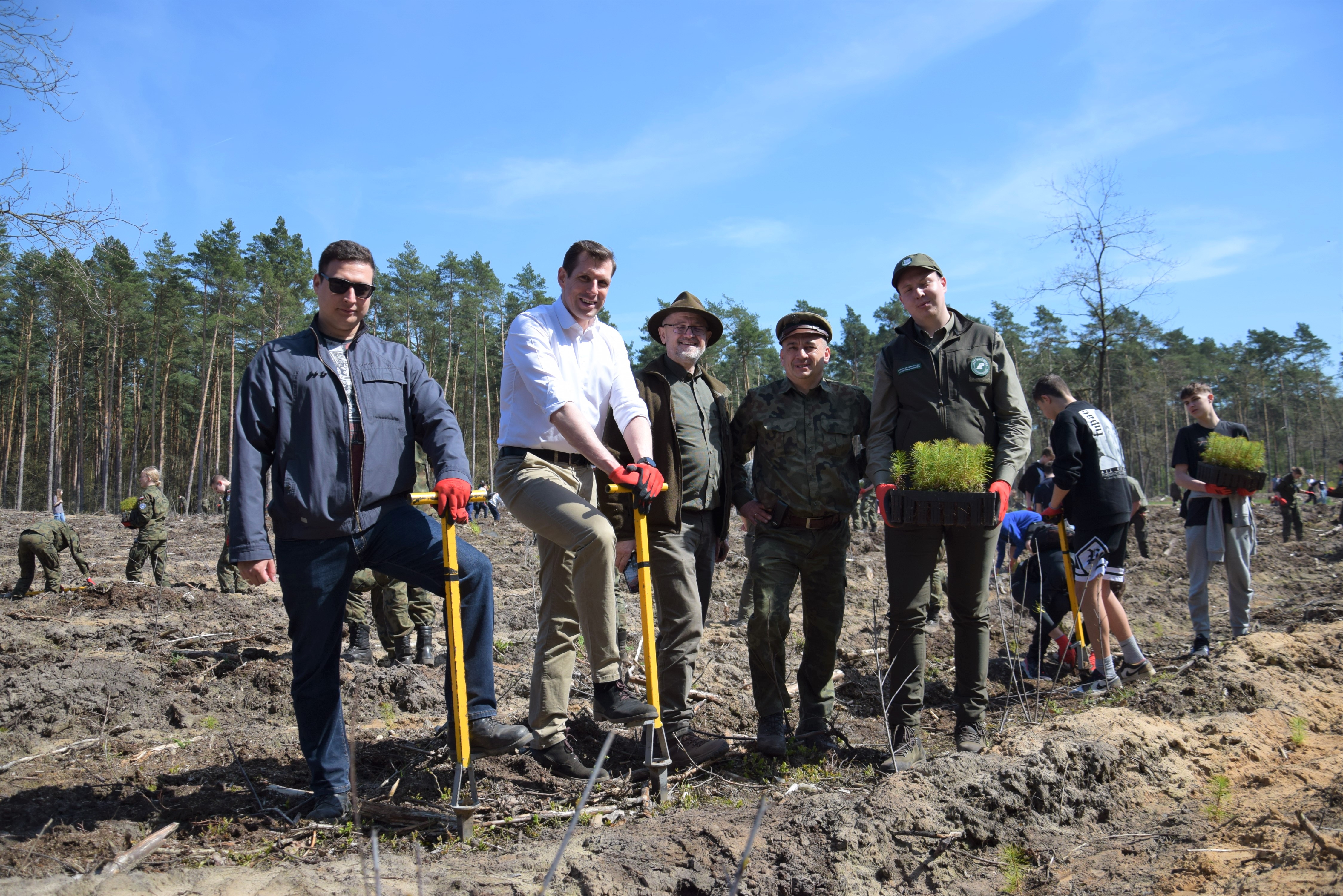 W sadzeniu 10 tys. sadzonek sosen Wojewodzie pomagali uczniowie trzech szkół z województwa mazowieckiego, m.in. z Liceum Ogólnokształcącego PUL w Wołominie oraz Zespół Szkół 128 na Targówku.