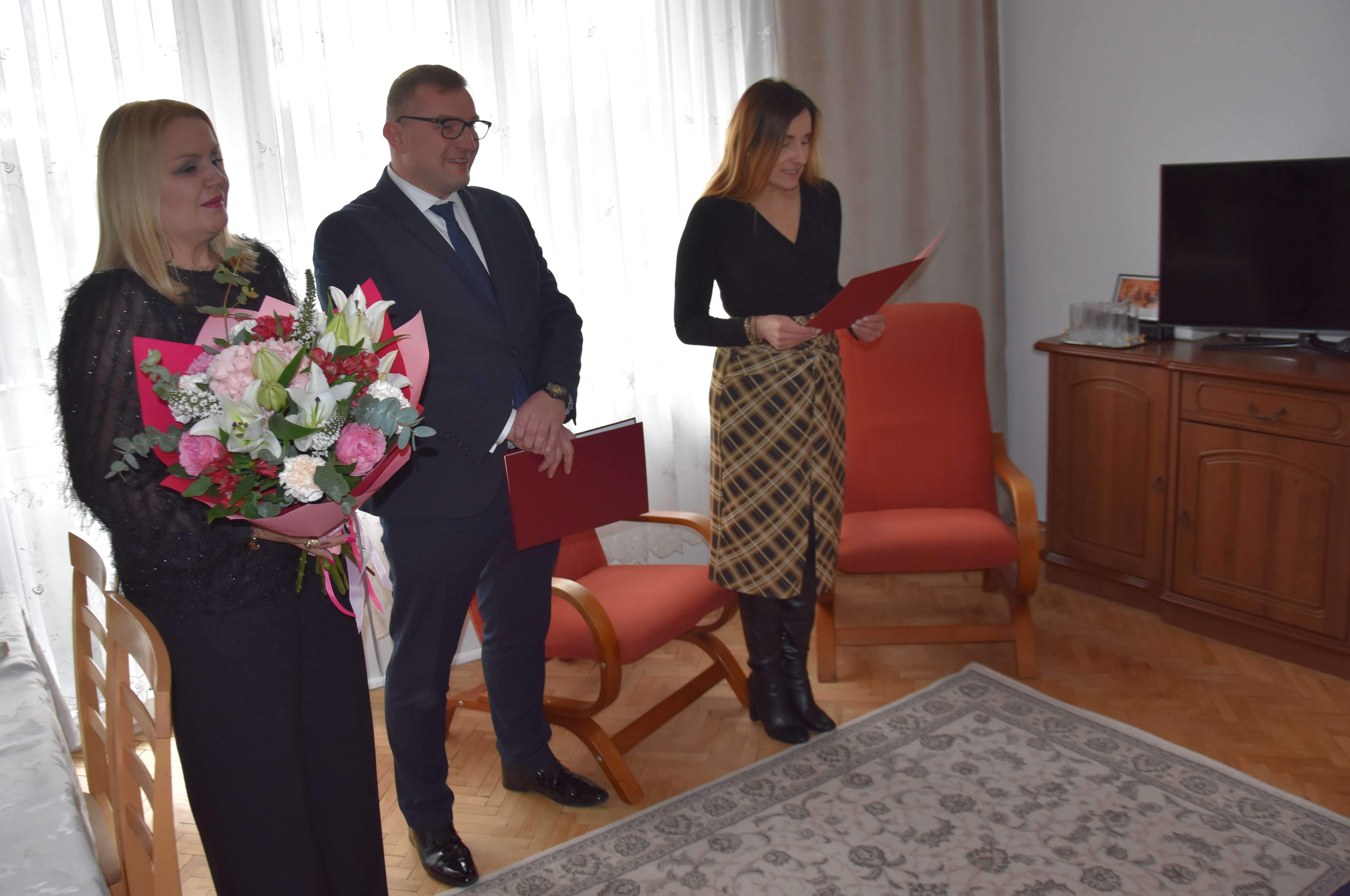 Kierownik Delegatury Mazowieckiego Urzędu Wojewódzkiego w Radomiu Rafał Molga wręczył list gratulacyjny od Prezesa Rady Ministrów Donalda Tuska oraz przekazał życzenia i kwiaty od wojewody mazowieckiego Mariusza Frankowskiego.