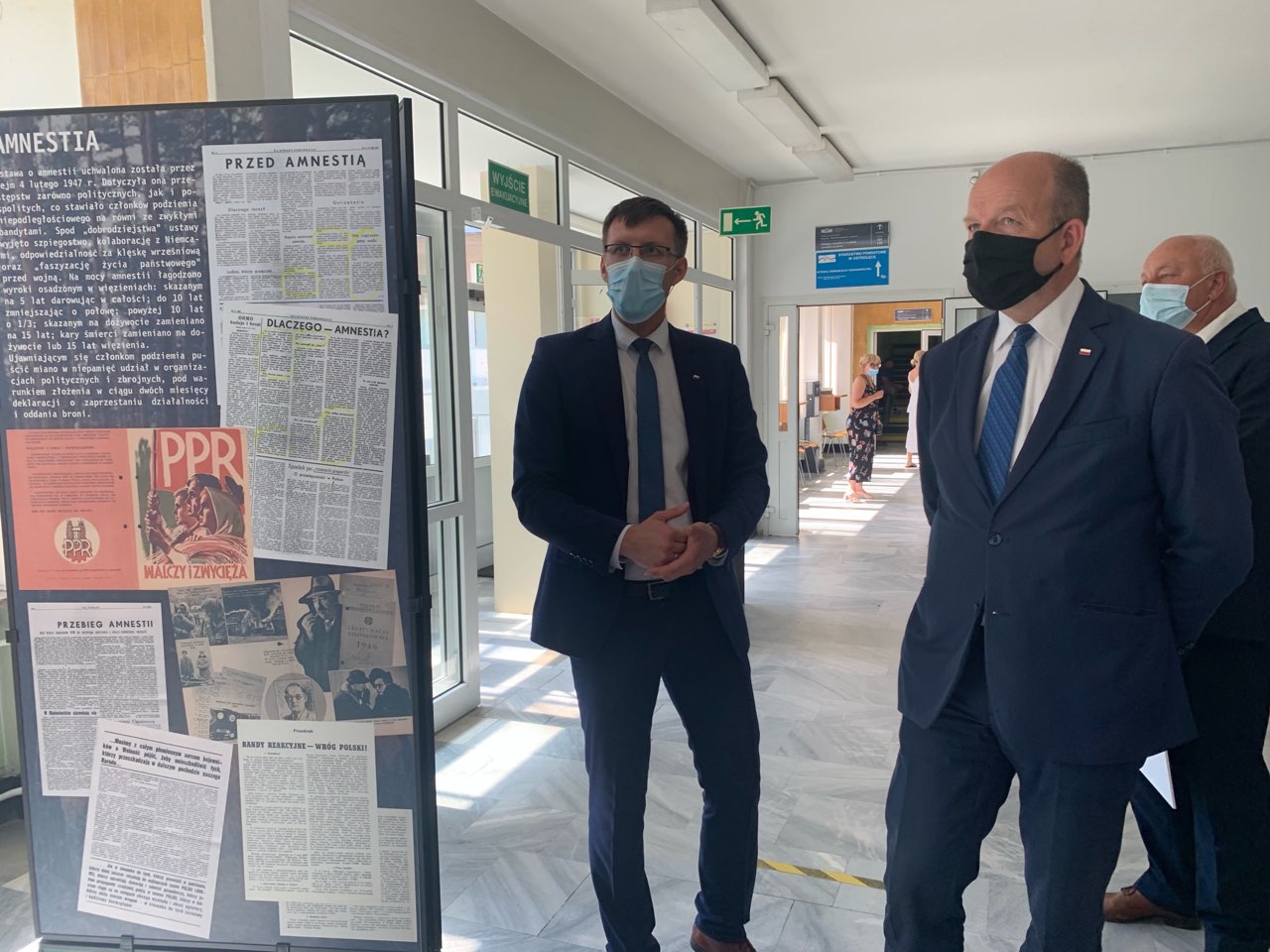 18 czerwca br. Wojewoda Mazowiecki Konstanty Radziwiłł wspólnie z Kierownikiem Delegatury MUW w Ostrołęce Marcinem Grabowskim obejrzeli wystawę Instytutu Pamięci Narodowej pt. „Ostatni Leśni – Mazowsze i Podlasie w ogniu 1948–1953”, która została umieszczona w głównym holu budynku delegatury w Ostrołęce. Ekspozycja dla zwiedzających otwarta jest do 30 czerwca 2021 roku.