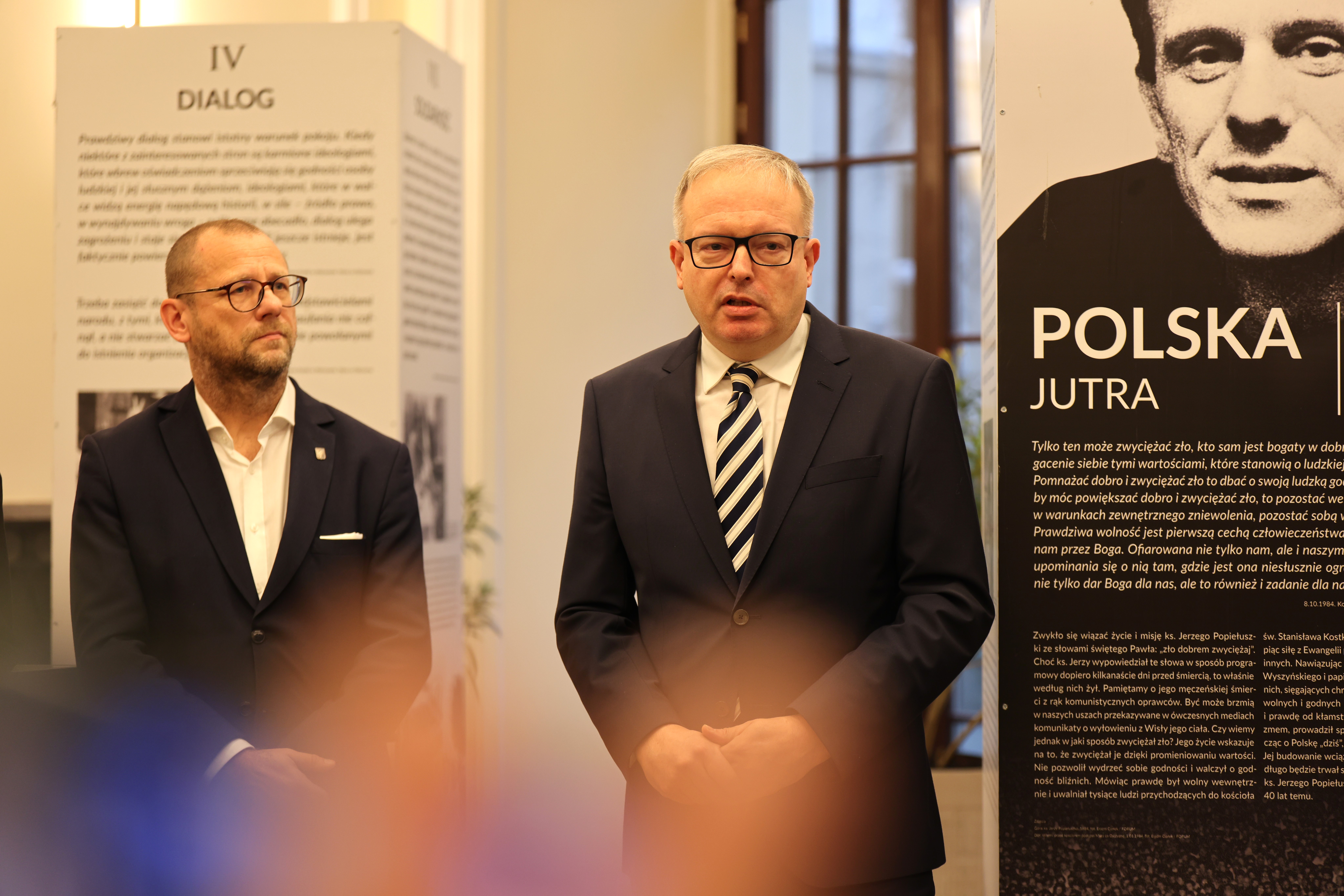 - Dziękuję organizatorom, bo jest to świetna inicjatywa, godna pochwały i naśladowania. Mam nadzieję, że ta wystawa skłoni Państwa do chwili refleksji i zadumy. Przesłanie, które ona ze sobą niesie jest niezwykle aktualne. Tak samo jak wartości, o które walczył ksiądz Jerzy Popiełuszko – powiedział Wicewojewoda Mazowiecki Robert Sitnik.