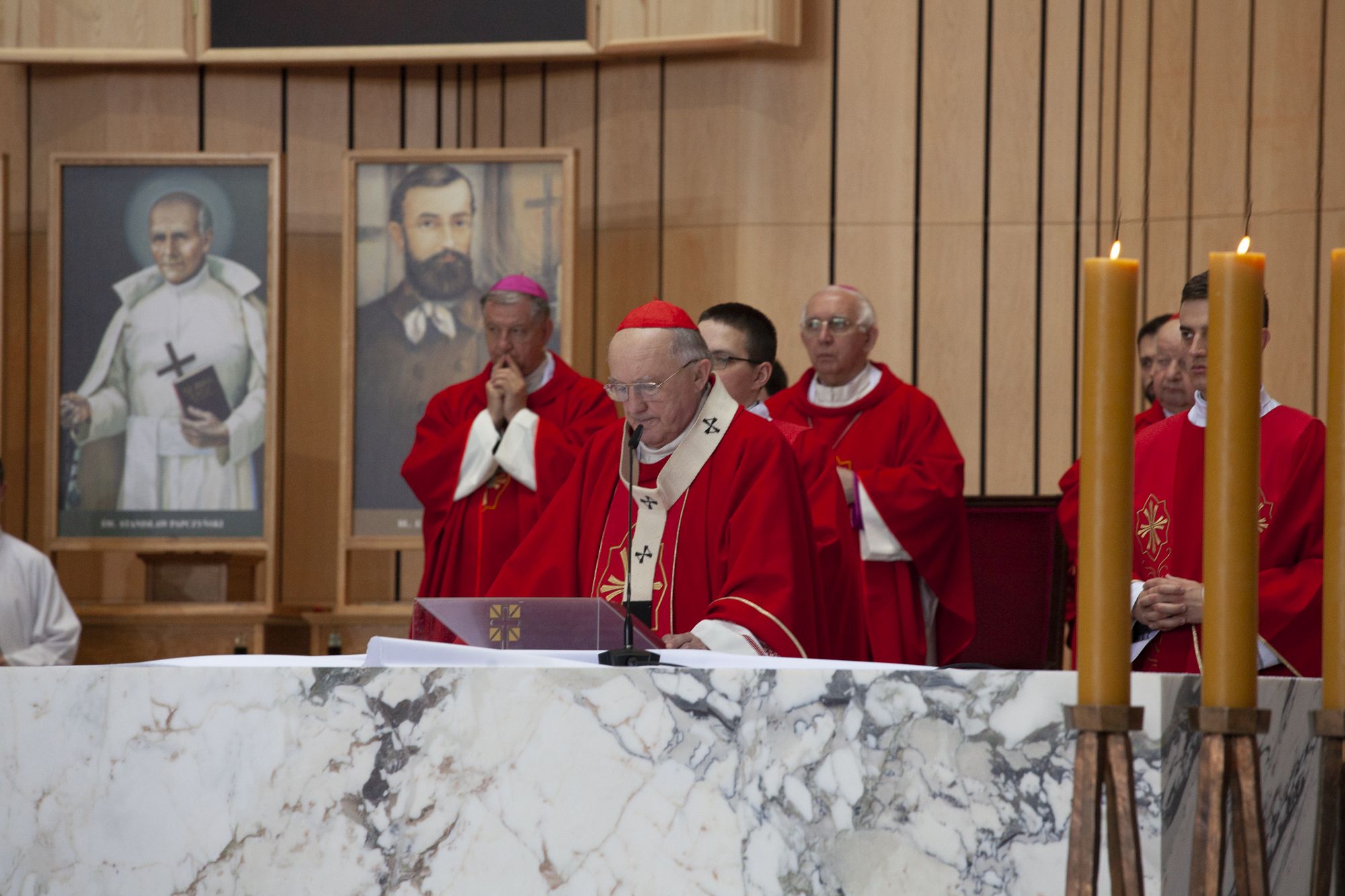 Uroczystość rozpoczęła się pielgrzymką z Bazyliki Katedralnej św. Jana Chrzciciela z której zostały przeniesione relikwie obojga błogosławionych. Następnie odprawiona została Eucharystia z udziałem biskupów w której przewodniczył metropolita warszawski kardynał Kazimierz Nycz. W mszy świętej udział wzięły siostry ze zgromadzenia sióstr franciszkanek służebnic Krzyża i przedstawiciele środowiska Lasek oraz przedstawiciele Instytutu Prymasowskiego i środowisk związanych z bł. prymasem Wyszyńskim. Na Eucharystię przybyli również przedstawiciele władz państwowych i samorządowych, parlamentarzyści, harcerze, Akcja Katolicka, a także przedstawiciele społeczności Ukraińców przybyłych do Polski. Homilię wygłosił ordynariusz gliwicki, biskup Jan Kopiec. Podczas Święta Dziękczynienia podziękowano Bogu za opiekę nad Ojczyzną, modlono się o pokój w kraju i na Ukrainie.