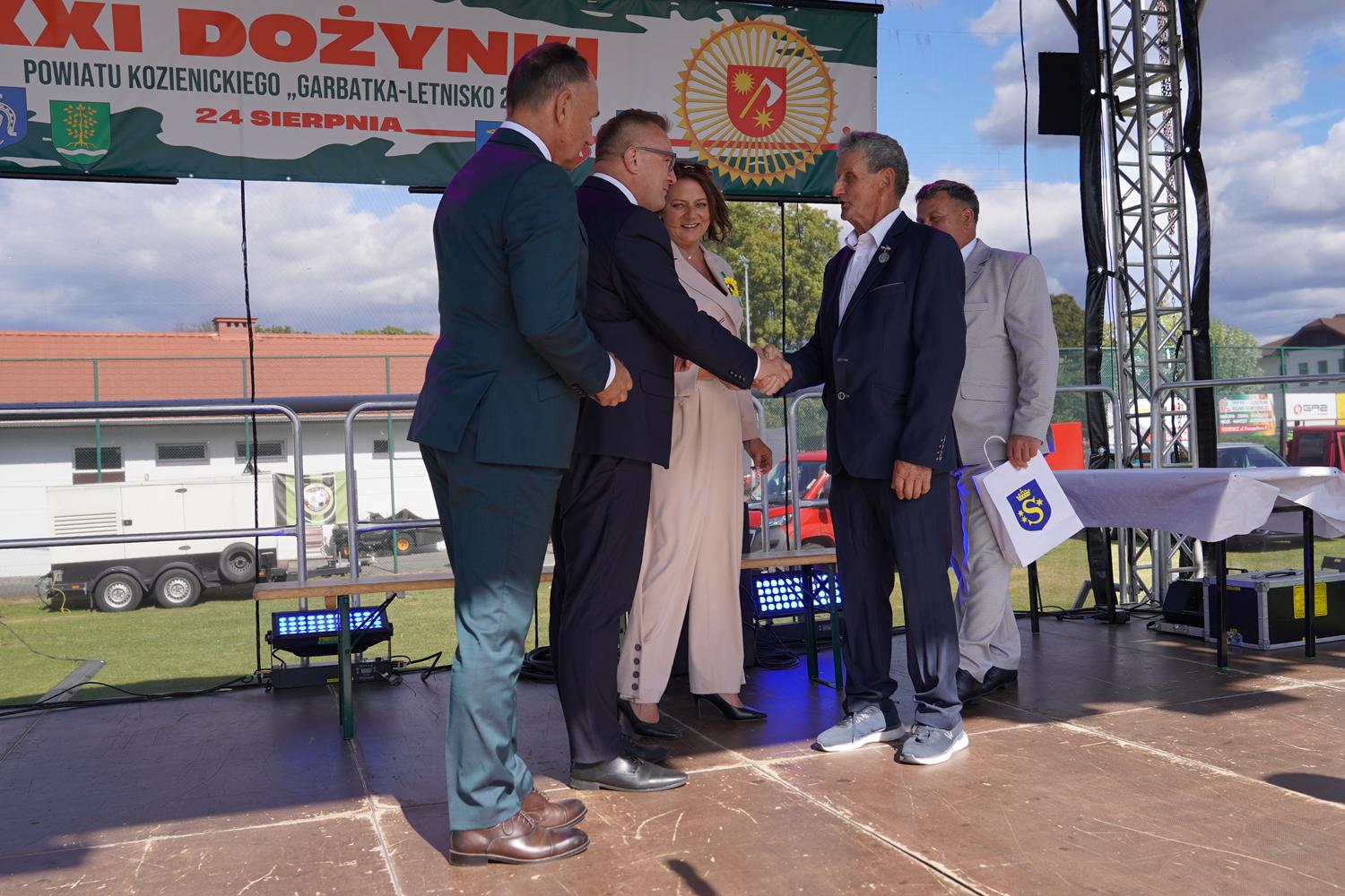 Wielobarwny korowód dożynkowy przemaszerował na miejscowy stadion. Podniosły charakter wydarzenia podkreśliło podniesienie flagi państwowej na maszt oraz wspólne odśpiewanie hymnu.