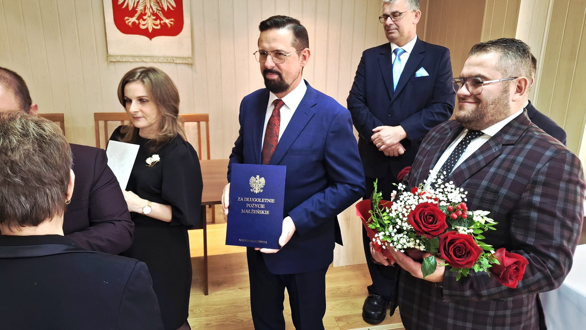 Sześć par świętowało 50-lecie małżeństwa. Od pół wieku idą razem przez życie - z miłością, cierpliwością i wzajemnym wsparciem. Z tej okazji, w imieniu wojewody mazowieckiego Mariusza Frankowskiego, kierownik Delegatury Mazowieckiego Urzędu Wojewódzkiego w Płocku Bogdan Banaszczak przekazał gratulacje i listy z życzeniami.