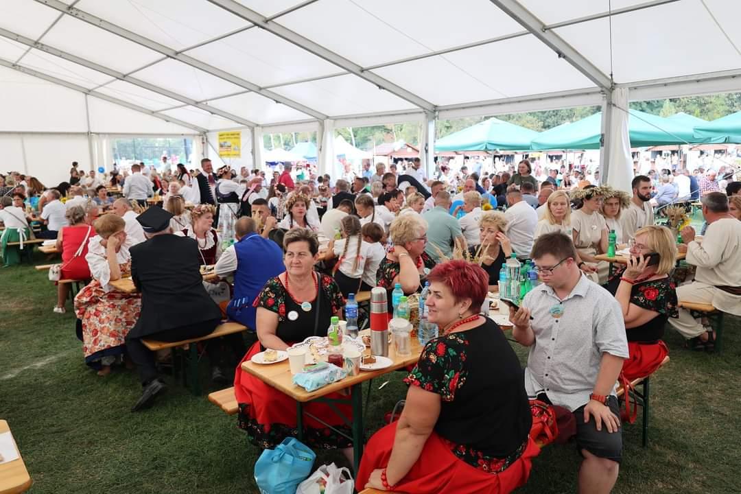 Nie zabrakło dzielenia się chlebem dożynkowym czy pięknego poloneza w wykonaniu zespołu Komorno, który wprowadził nas w ludowy nastrój.
