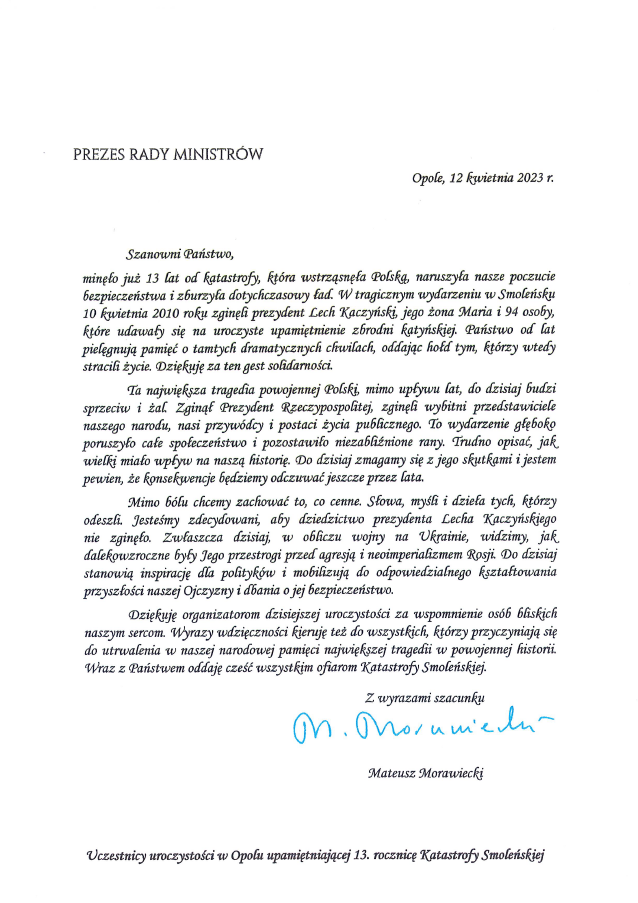 Dziś w Opolu upamiętniono 13. rocznicę Katastrofy Smoleńskiej
