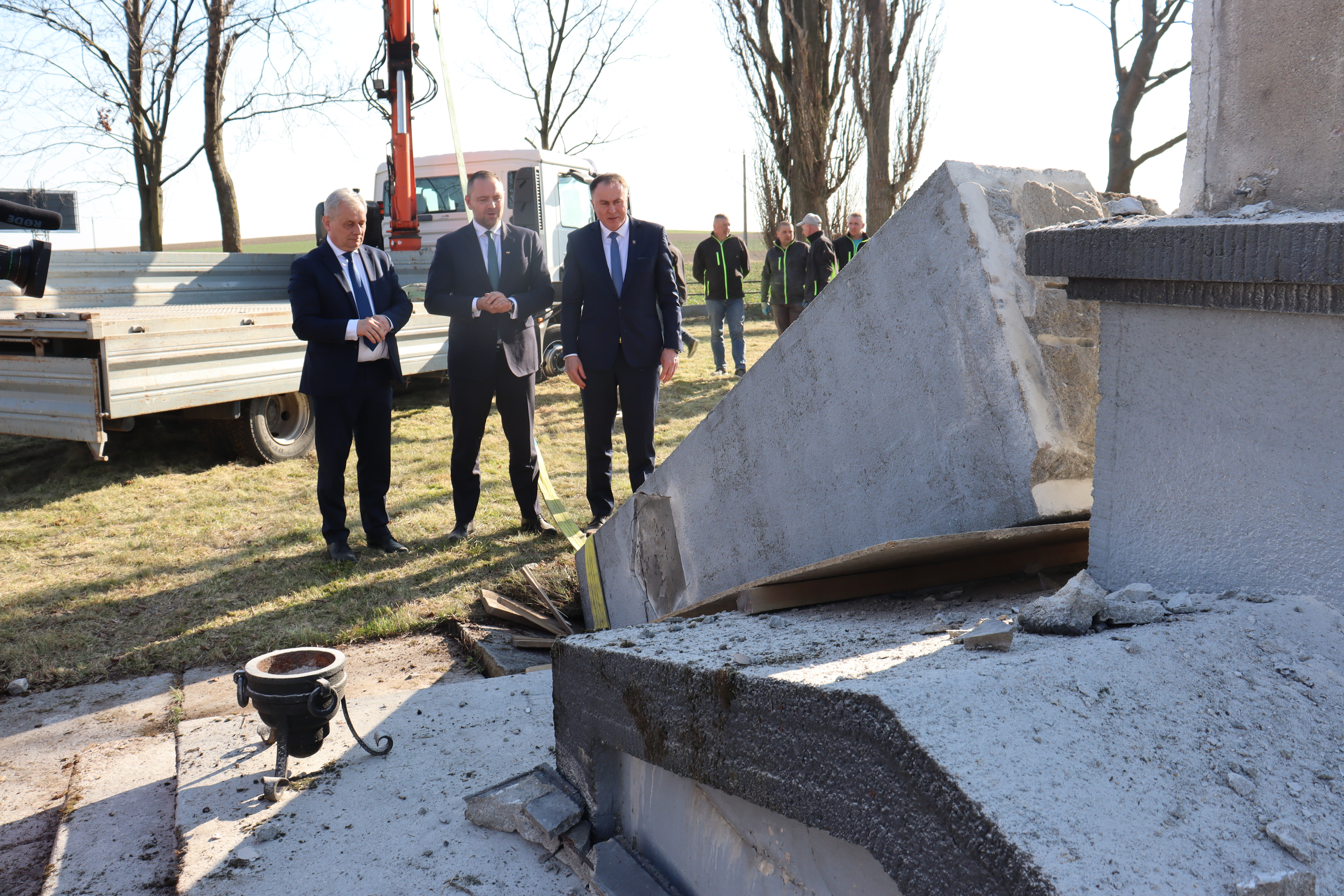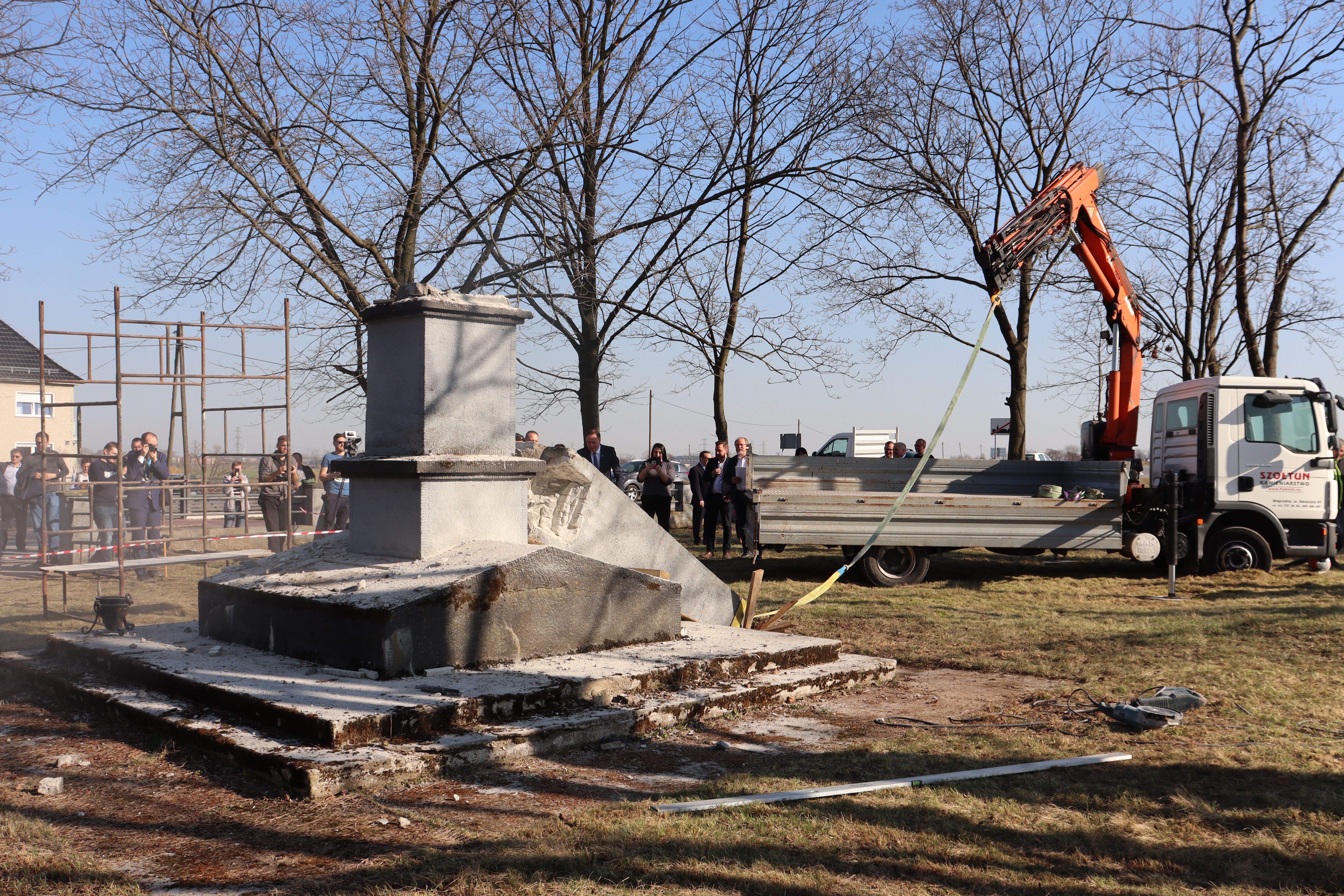 Kolejny etap dekomunizacji. W Chrzowicach obalono pomnik Armii Czerwonej