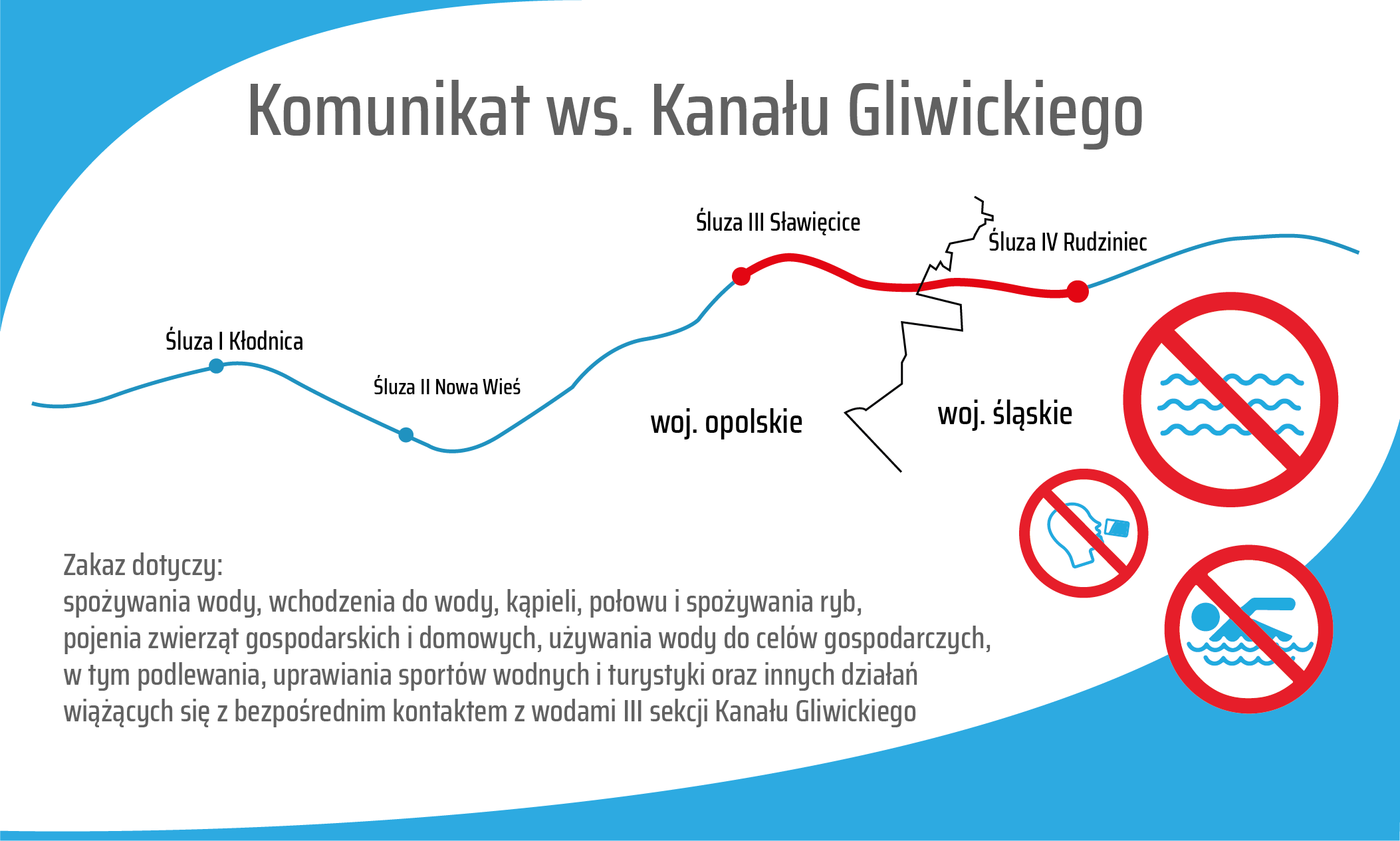 Wojewoda Opolski Sławomir Kłosowski wydłużył na terenie województwa opolskiego okres obowiązywania rozporządzenia porządkowego dotyczącego zakazu korzystania z wód Kanału Gliwickiego. Zakaz dotyczy odcinka od granicy województwa śląskiego z województwem opolskim do śluzy Sławęcice.