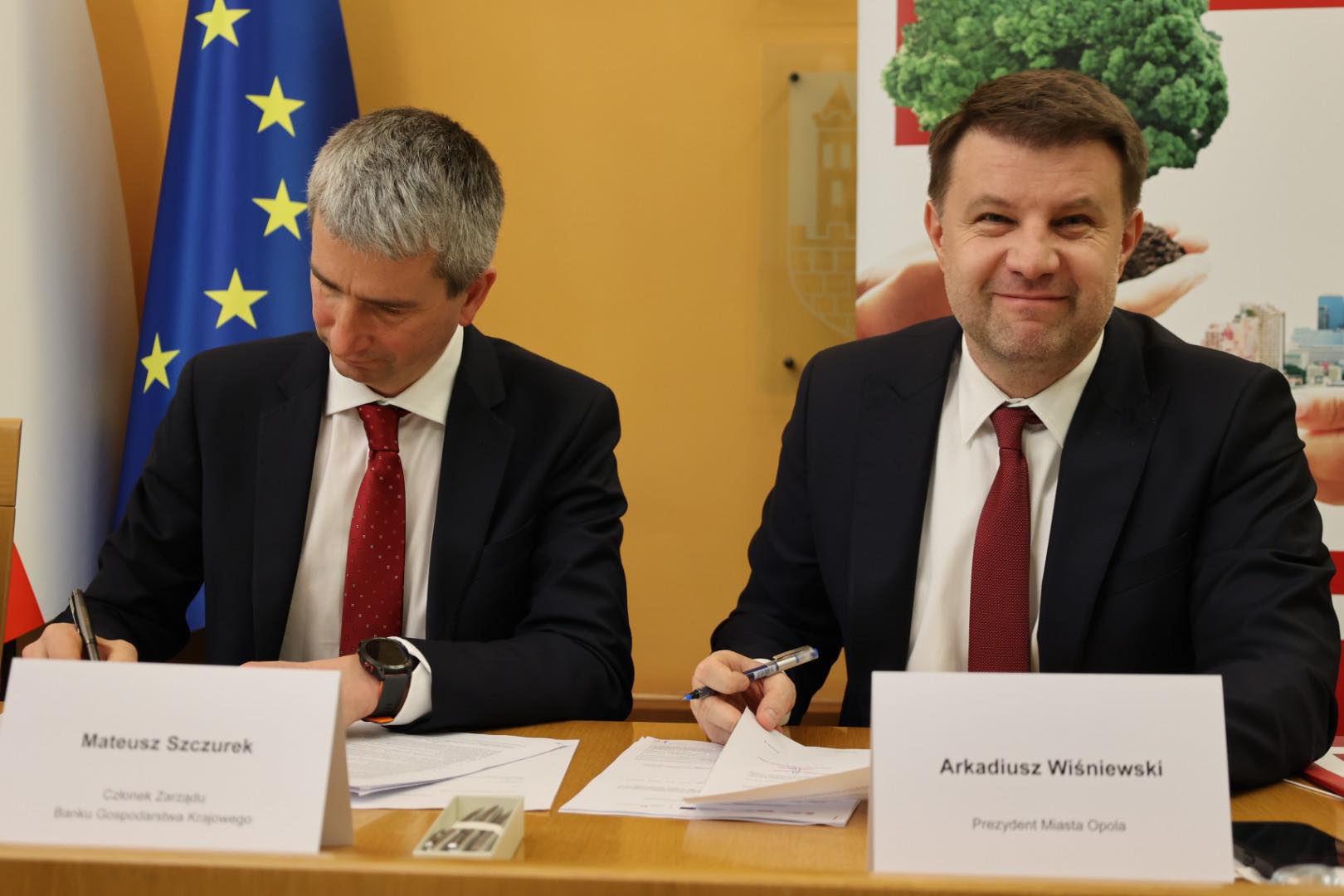 Podczas spotkania w Opolskim Urzędzie Wojewódzkim, prezydent Miasta Opole Arkadiusz Wiśniewski oraz członek zarządu Banku Gospodarstwa Krajowego Mateusz Szczurek, podpisali umowę na pożyczkę wspierającą zieloną transformację miast, finansowaną ze środków Krajowego Planu Odbudowy i Zwiększania Odporności (KPO). Dzięki niej Opole otrzyma refinansowanie na kwotę blisko 10,2 mln zł na rewitalizację placu dworcowego.
