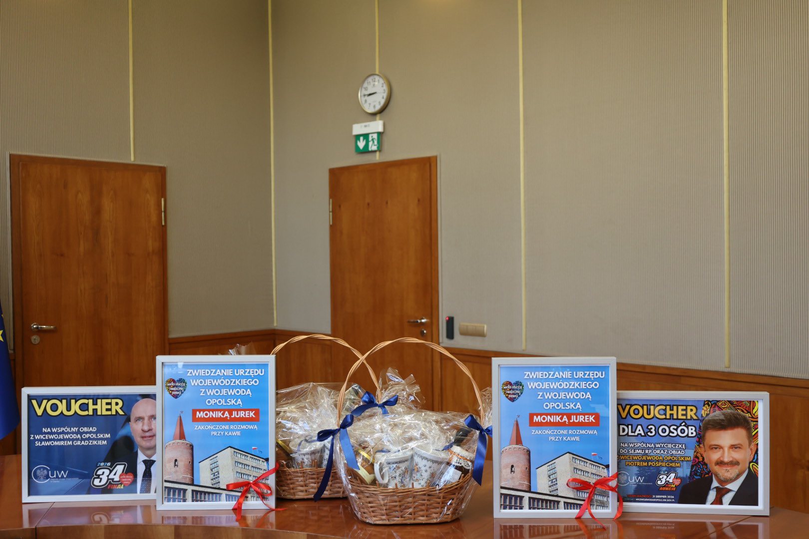 - Wojewoda Opolska Monika Jurek przekazała dwa vouchery na zwiedzanie Opolskiego Urzędu Wojewódzkiego pod swoim patronatem, zakończone rozmową przy kawie dla dwóch osób. Uzupełnieniem są kosze z regionalnymi wyrobami oraz opolską porcelaną.