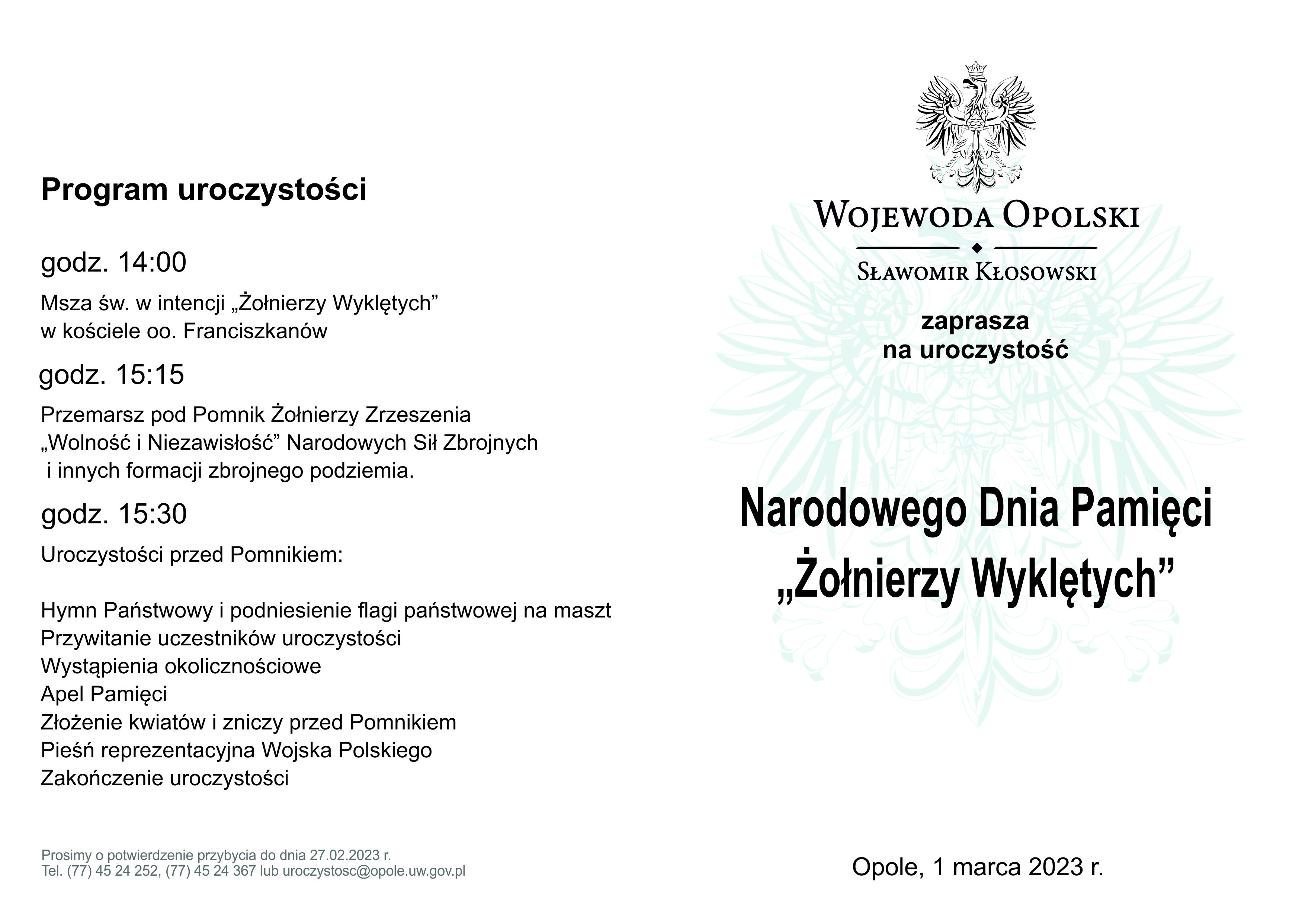 Wojewoda Opolski zaprasza na uroczystość Narodowego Dnia Pamięci „ Żołnierzy Wyklętych”