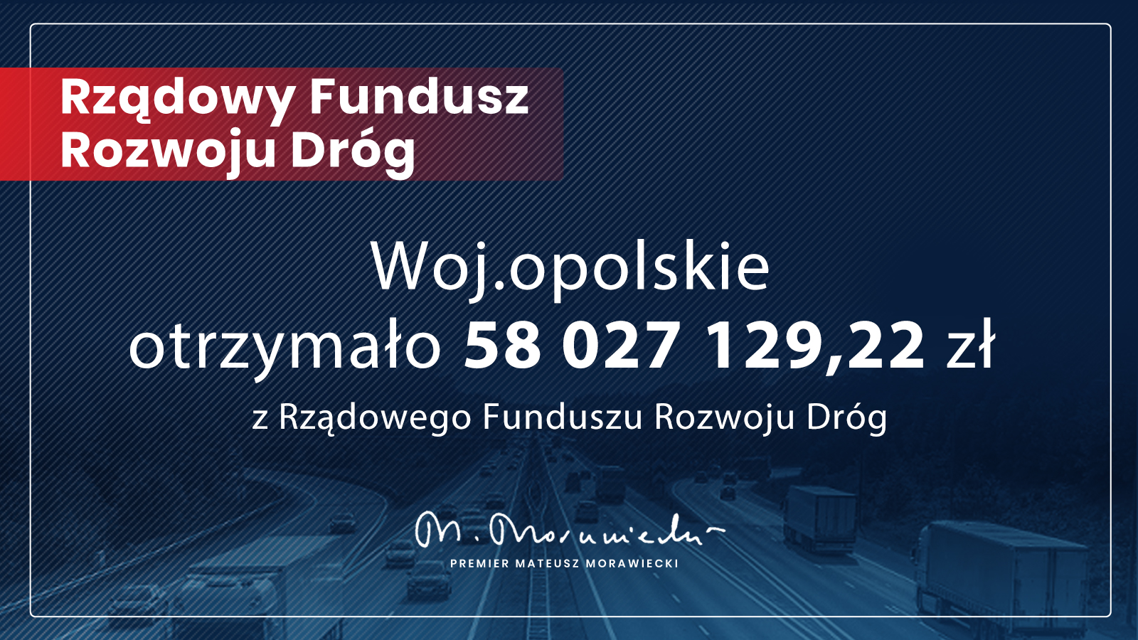 58 mln złotych – tyle wynosi dofinansowanie w ramach kolejnej transzy środków na realizację Rządowego Funduszu Rozwoju Dróg. Dofinansowanie ze środków programu uzyska 91 zadań.