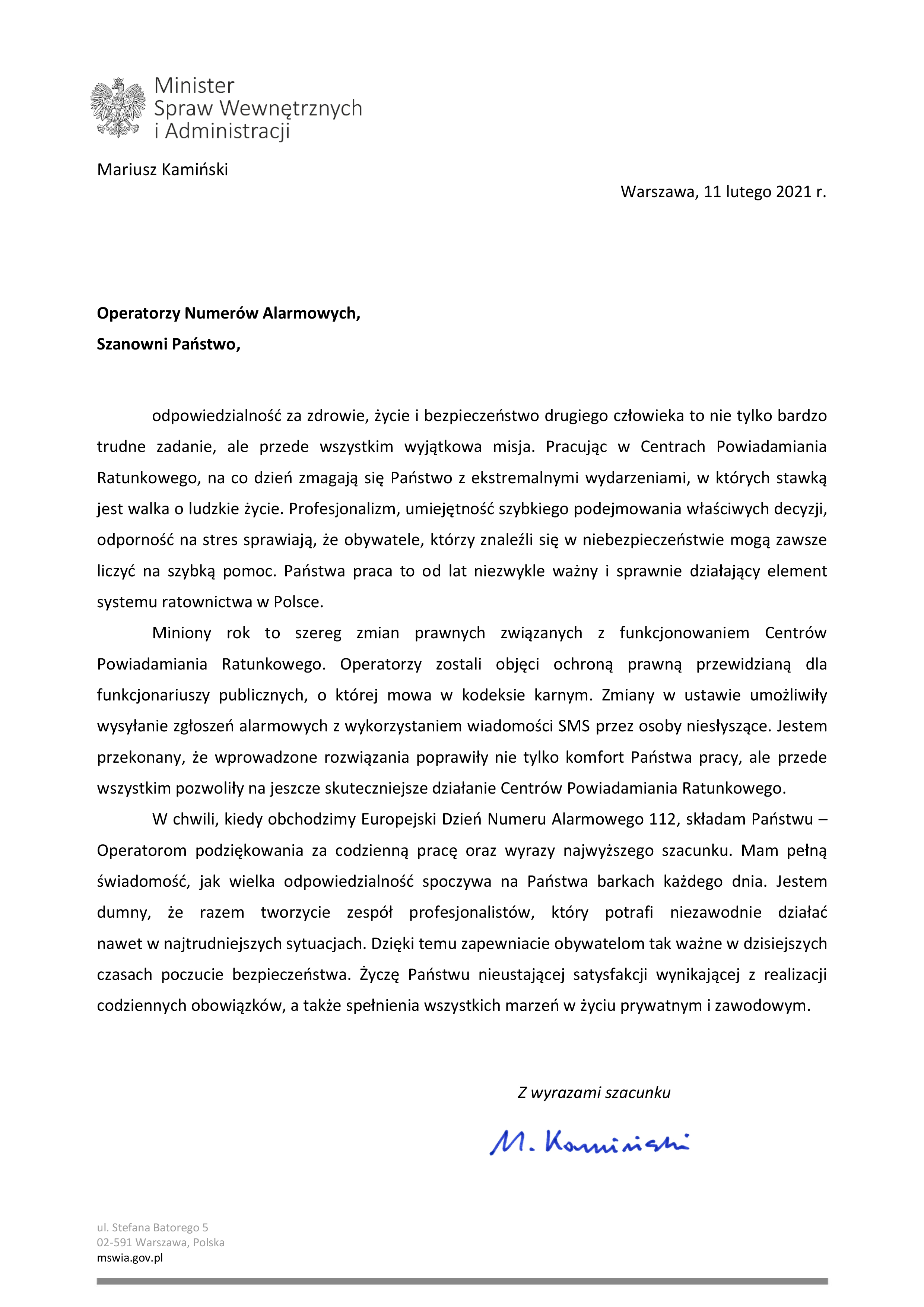 Specjalne wyróżnienie od Ministra Spraw Wewnętrznych i Administracji Mariusza Kamińskiego, trafiło do rąk pięciorga operatorów. - To praca bardzo odpowiedzialna, nie raz stresująca. Są sytuacje stresujące, są ciężkie zgłoszenia. Naszym zadaniem też jest uspokojenie tych ludzi. Myślę, że robimy to jak najlepiej - komentuje Sylwia Szumska, operator numeru alarmowego.