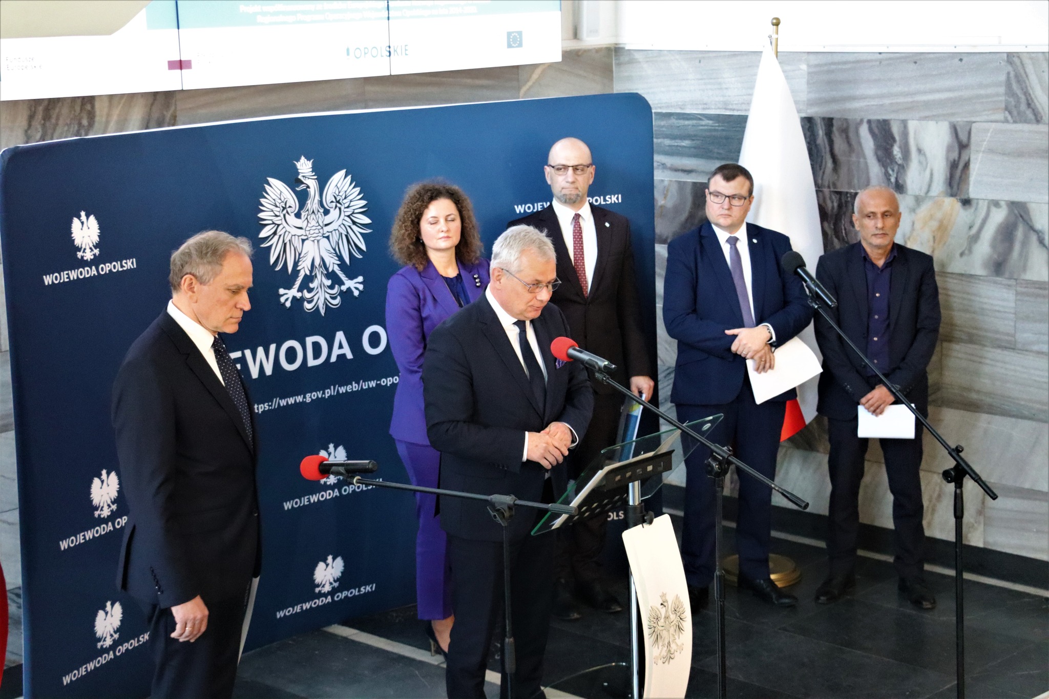 W dzisiejszym briefingu wzięli udział: Wojewoda Opolski - Sławomir Kłosowski, Wojciech Skowyrski – Zastępca Prezesa Wód Polskich ds. Ochrony przed Powodzią i Suszą, Mirosław Kurz – Dyrektor Państwowego Gospodarstwa Wodnego Wody Polskie Regionalnego Zarządu Gospodarki Wodnej w Gliwicach, Marcin Jarzyński – Zastępca Dyrektora Regionalnego Zarządu Gospodarki Wodnej Wód Polskich w Gliwicach ds. Ochrony przed Powodzią i Suszą, Abdullah Al-Selwi – Dyrektor Zarządu Zlewni Wód Polskich w Opolu oraz Małgorzata Kałuża-Swoboda – Dyrektor Wydziału Infrastruktury i Nieruchomości.