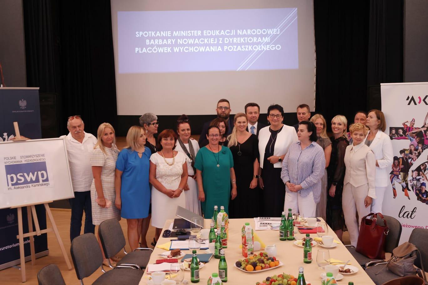 Kondycja placówek wychowania pozaszkolnego w Polsce i ich znaczenie dla realizacji zadań edukacji oraz wychowania dzieci i młodzieży w polskim systemie edukacji tematem spotkania Minister Edukacji Narodowej Barbary Nowackiej z Zarządem Polskiego Stowarzyszenia Wychowania Pozaszkolnego w Młodzieżowym Domu Kultury w Opolu. W spotkaniu uczestniczyła również Wojewoda Opolski Monika Jurek, Opolski Kurator Oświaty Joanna Raźniewska oraz Opolski Wicekurator Oświaty Marek Leśniak.