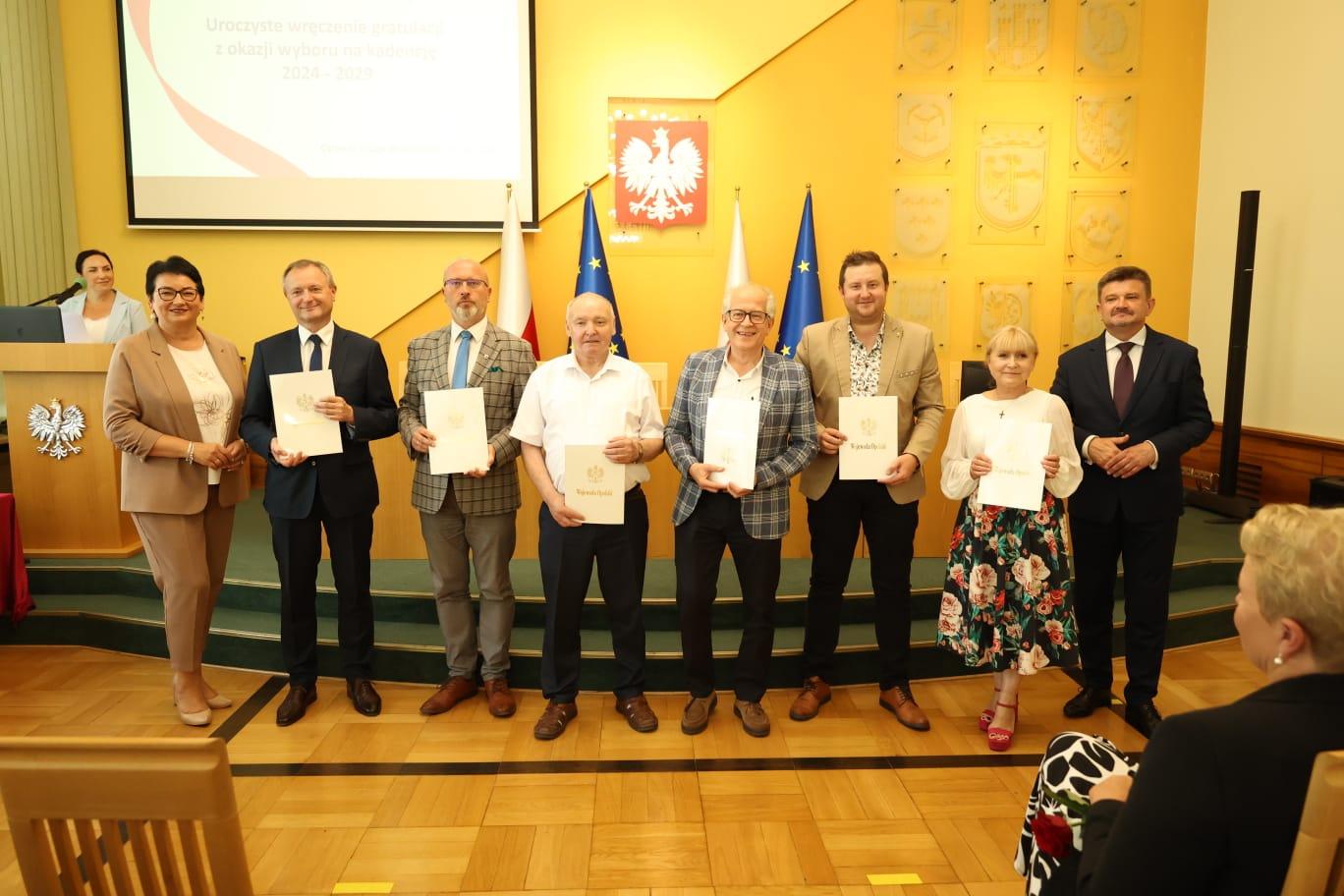 Brązowy Krzyż Zasługi nadany przez Prezydenta Rzeczypospolitej Polskiej za zasługi w działalności na rzecz samorządu terytorialnego odebrała Pani Sybilla Stelmach, wójt gminy Popielów. Odznaki Honorowe „Za Zasługi dla Samorządu Terytorialnego” przyznane przez Ministra Spraw Wewnętrznych i Administracji otrzymali: Adam Krupa, burmistrz Gmina Głubczyce, Leonarda Płoszaj- Wicestarosta Opolski, Aneta Rabczewska wójt gminy Olszanka w kadencji 2018-2023; Jarosław Tkaczyński, burmistrz gminy Praszka w kadencji 2018-2023 oraz Barbara Zając, wójt gminy Pokój.