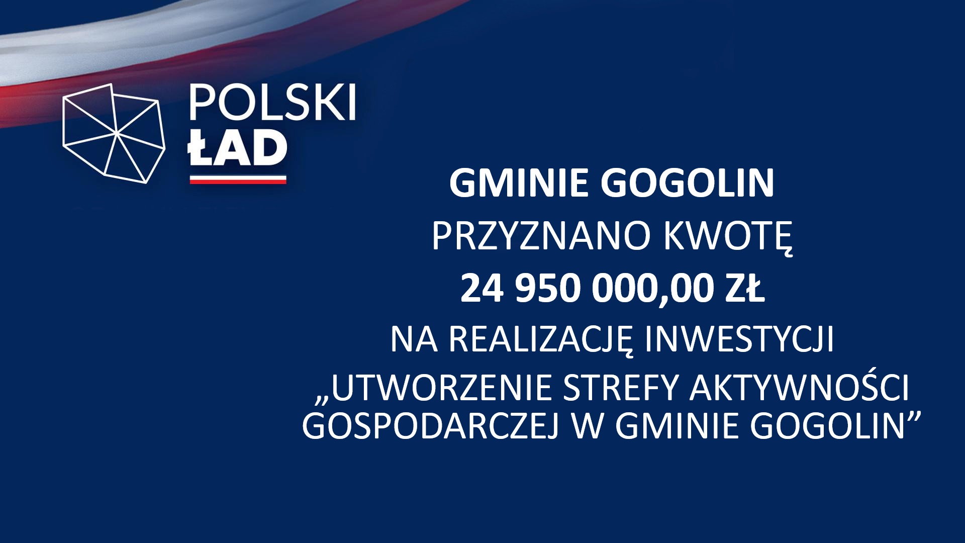 - Gminie Gogolin przyznano kwotę 24 950 000,00 zł na realizację inwestycji „Utworzenie Strefy Aktywności Gospodarczej w Gminie Gogolin”;