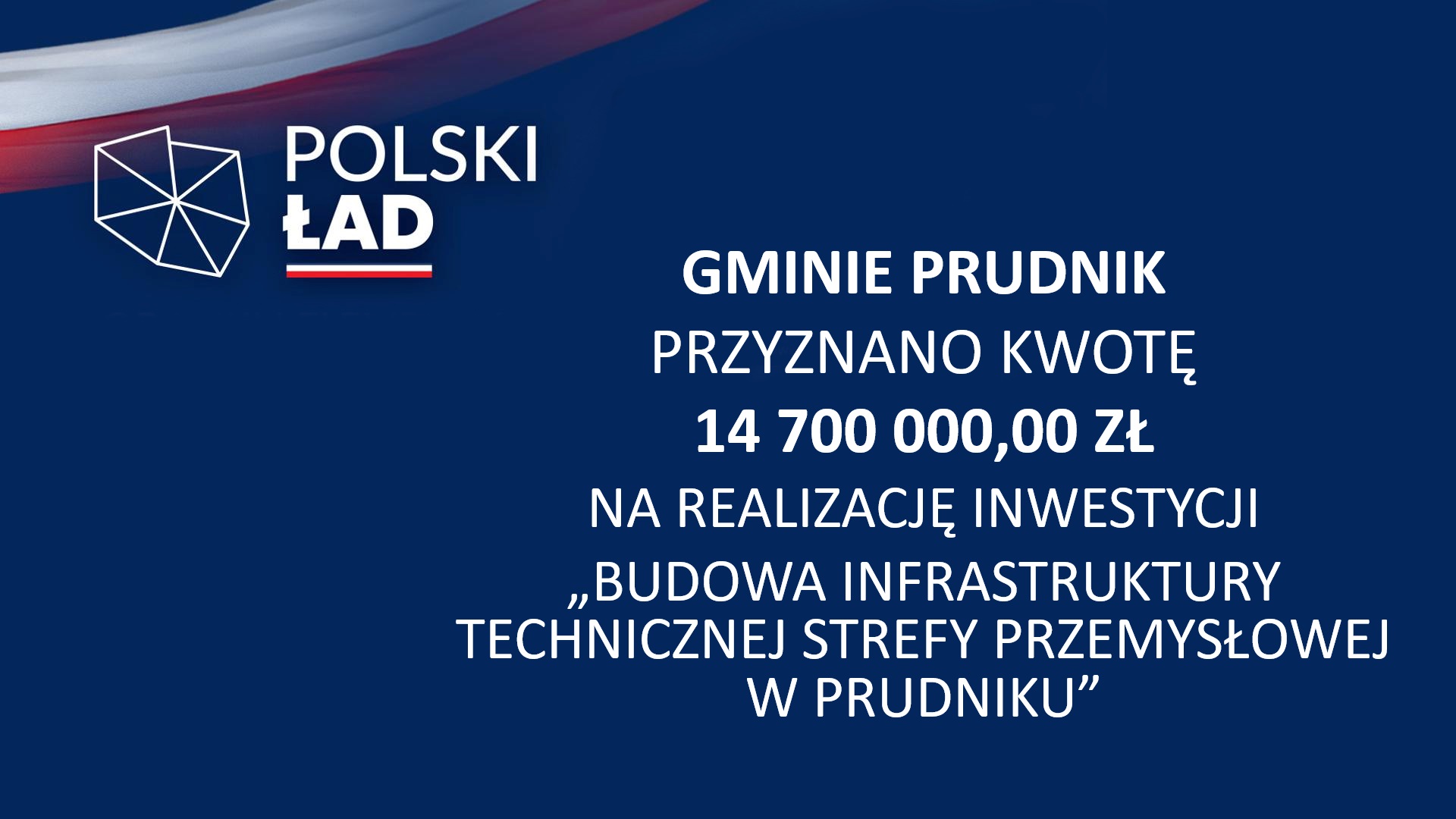 - Gminie Prudnik przyznano kwotę 14 700 000,00 zł na realizację inwestycji „Budowa Infrastruktury Technicznej Strefy Przemysłowej w Prudniku”;
