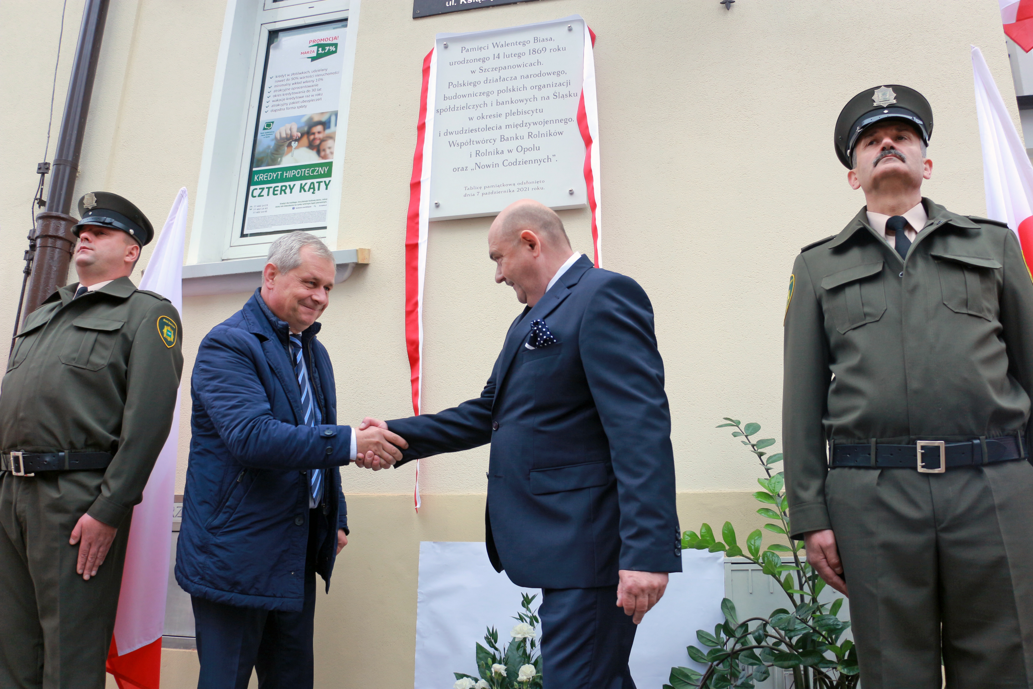 Na ścianie siedziby Banku Rolników w samym sercu Opolszczyzny odsłonięto dziś tablicę upamiętniającą Walentego Biasa, działacza polonijnego w Niemczech, uczestnika Powstań Śląskich i współzałożyciela powołanego w 1911 r. Banku Rolników – „spółki z nieograniczoną poręką”.