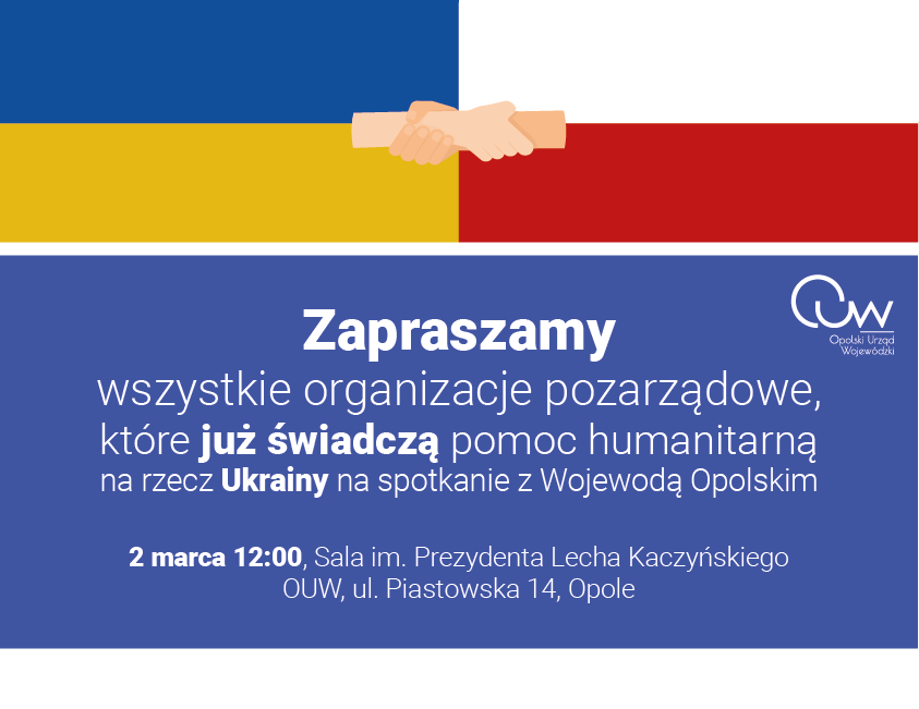 -Zapraszamy wszystkie organizacje pozarządowe, które już świadczą pomoc humanitarną na rzecz Ukrainy - zapowiada wojewoda opolski Sławomir Kłosowski.