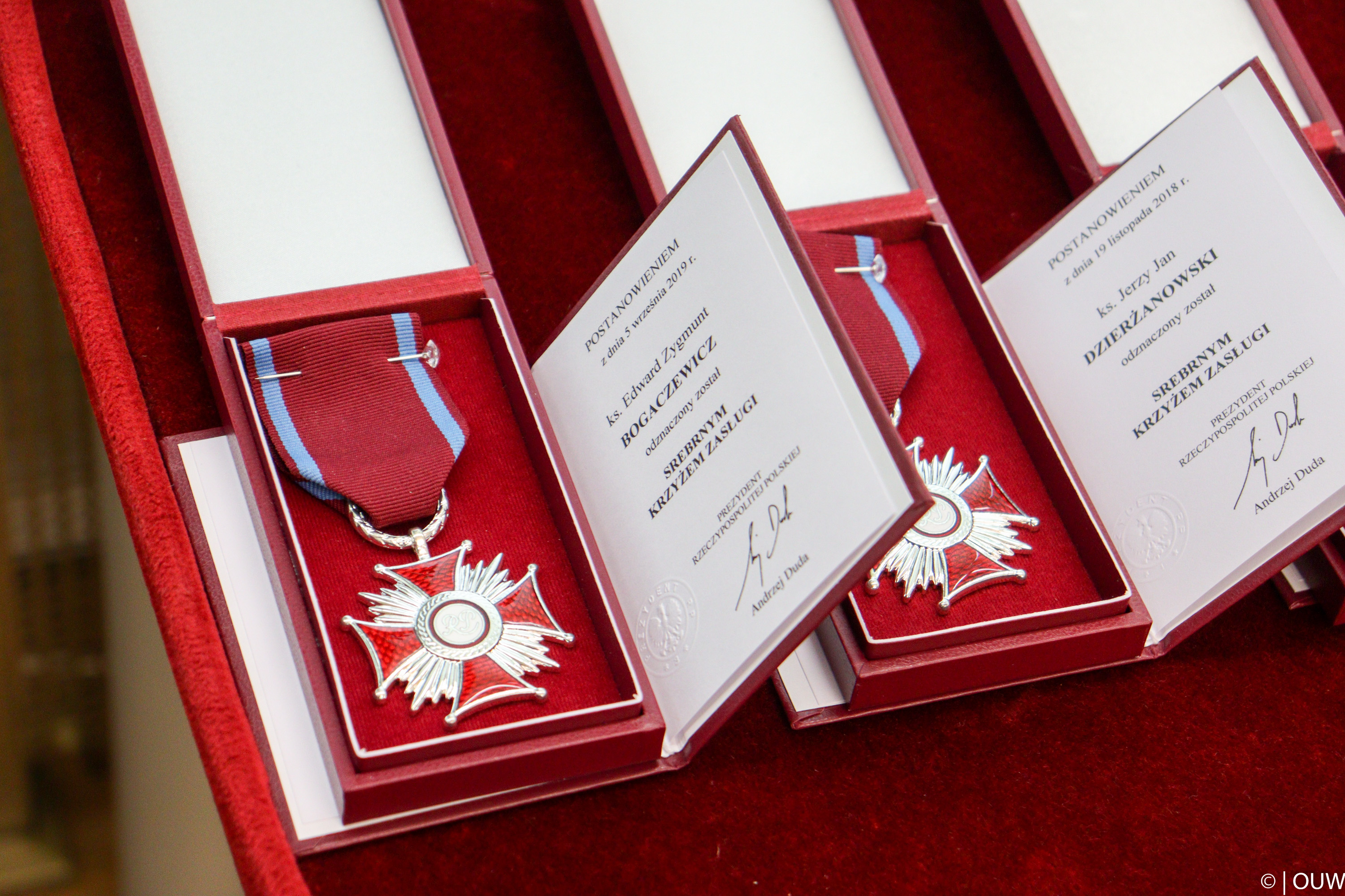 W imieniu Prezydenta RP Andrzeja Dudy, wojewoda opolski wręczył dziś 22 odznaczenia państwowe zasłużonym mieszkańcom regionu. Srebrnymi oraz brązowymi Krzyżami Zasługi uhonorowano m.in. ks. Edwarda Bogaczewicza - proboszcza parafii p.w. Ducha Świętego i NMP Matki Kościoła w Kędzierzynie-Koźlu oraz ks. Jerzego Jana Dzierżanowskiego, który od lat zaangażowany jest w działalność na rzecz wsparcia oraz ochrony życia i rodziny.