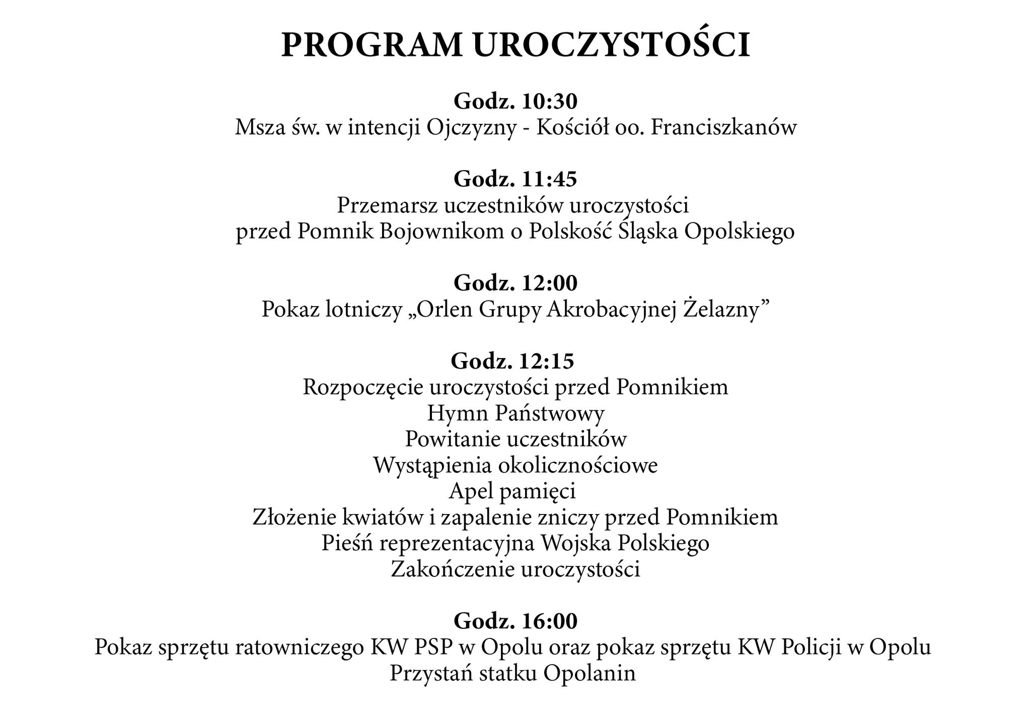 godz. 11.45 - Przemarsz uczestników uroczystości przed Pomnik Bojownikom o Polskość Śląska Opolskiego
