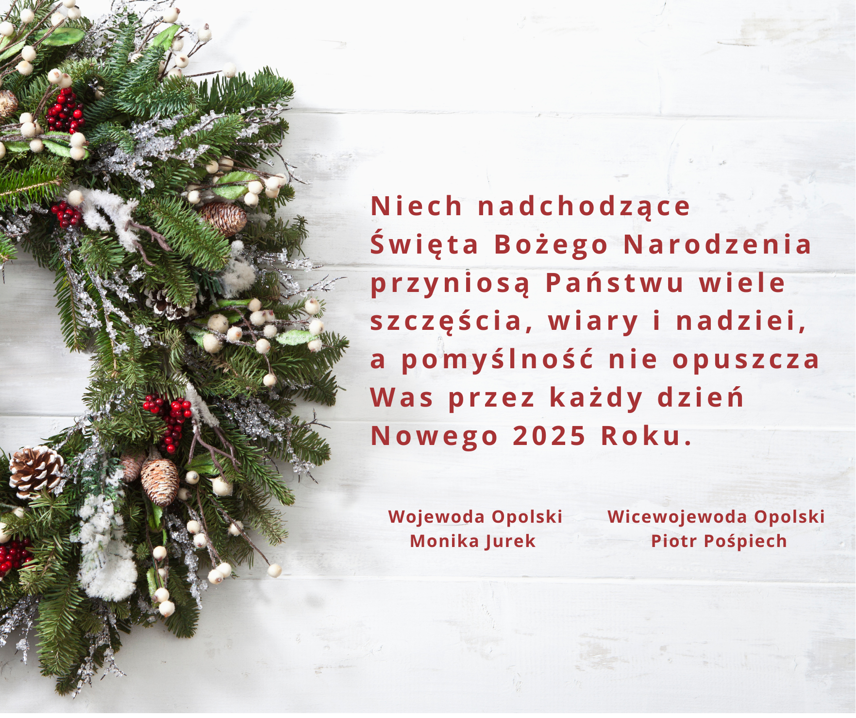 Wojewoda Opolski Monika Jurek wraz z Wicewojewodą Opolskim Piotrem Pośpiechem składają najserdeczniejsze życzenia wszystkim mieszkańcom Opolszczyzny.