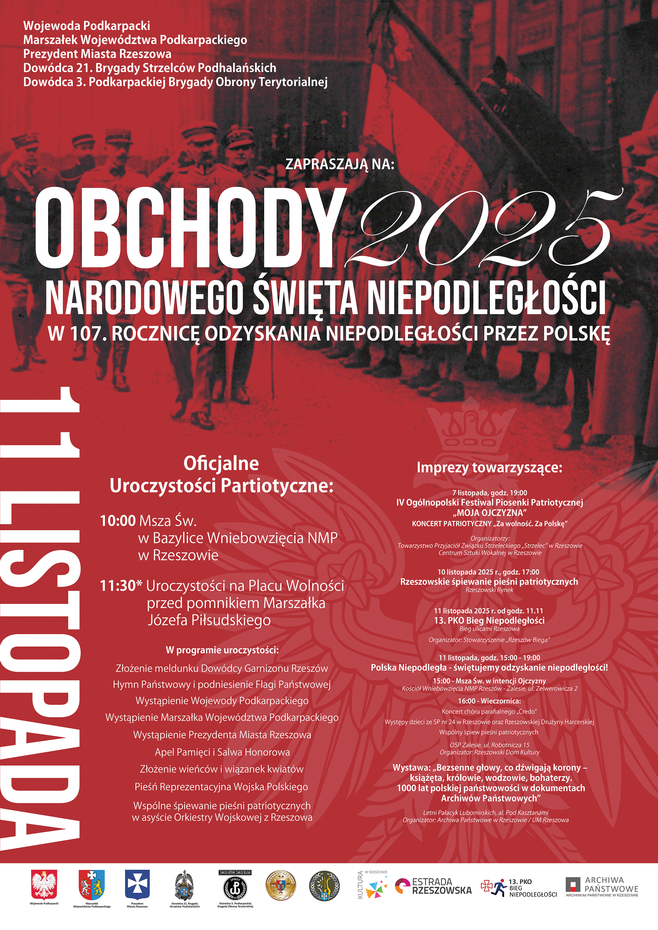 Zapraszamy do udziału w obchodach Narodowego Święta Niepodległości w Rzeszowie w 107. rocznicę odzyskania Niepodległości przez Polskę.