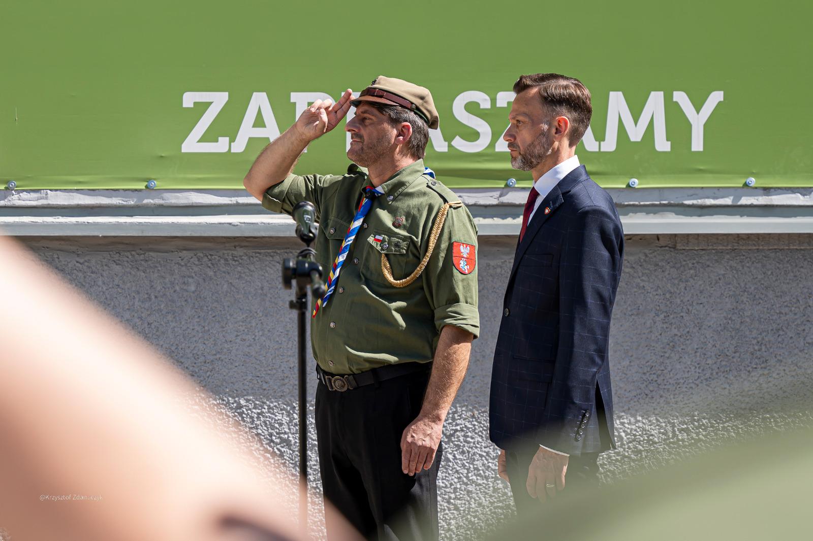 Wcześniej z udziałem wojewody odbyła się kameralna uroczystość pod siedzibą Białostockiej Chorągwi ZHP przy ul. Pałacowej, w której wzięli udział harcerze oraz seniorzy.
