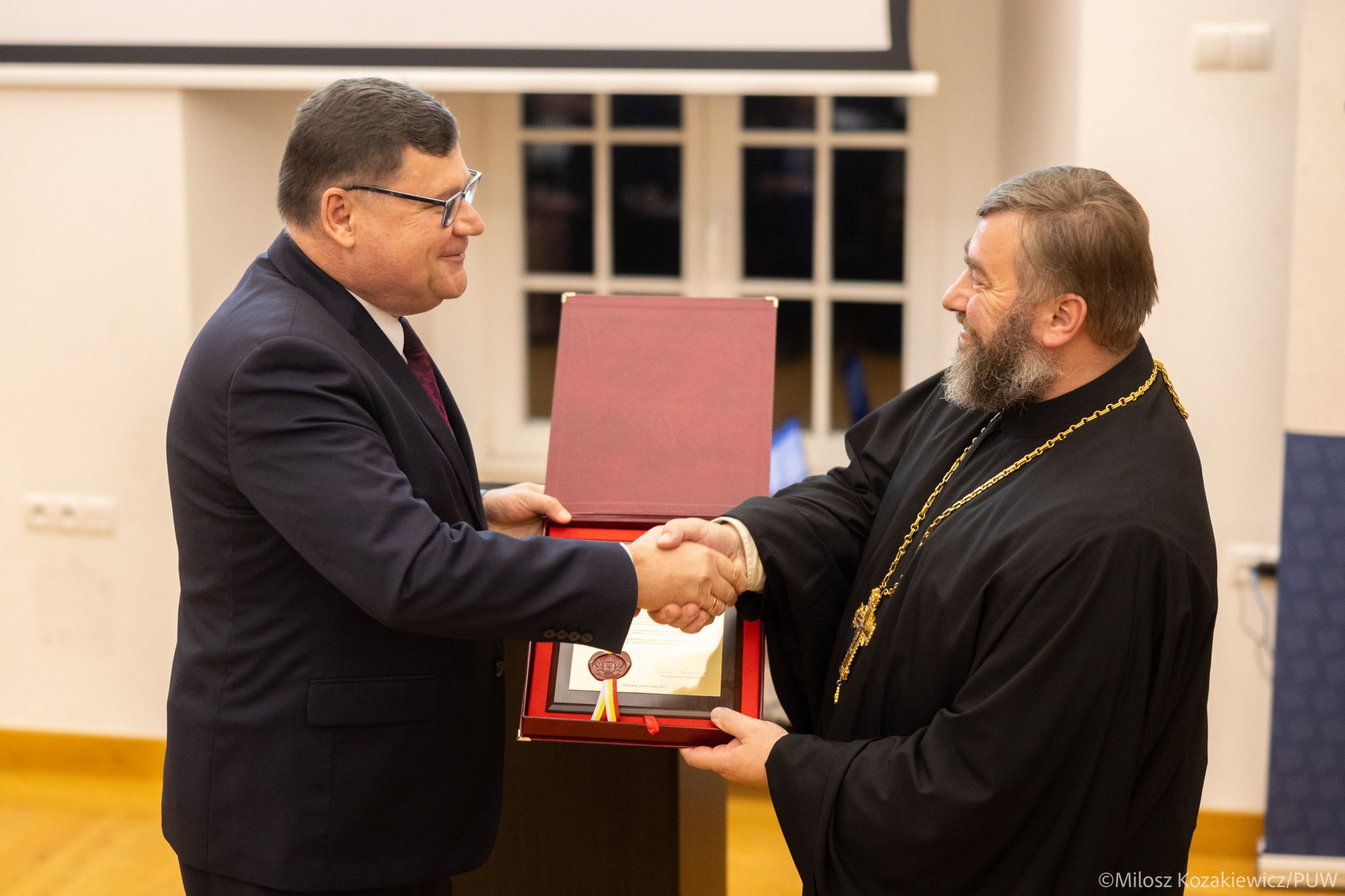 Podziękował kanclerzom Akademii, fundatorom, prezesom i członkom zarządu, radzie Fundacji oraz wszystkim, którzy poświęcili swoje umiejętności, wiedzę i czas na tworzenie i wspieranie działalności ośrodka. Obecny kanclerz ks. prot. Jarosław Jóźwik został odznaczony orderem św. Równej Apostołom Marii Magdaleny III stopnia. Za szczególne zasługi odznaczeni orderem św. Równych Apostołom Cyryla i Metodego zostali: prof. Marzanna Kuczyńska, prof. Alicja Zofia Nowak oraz dr Jakub Sobczak.
