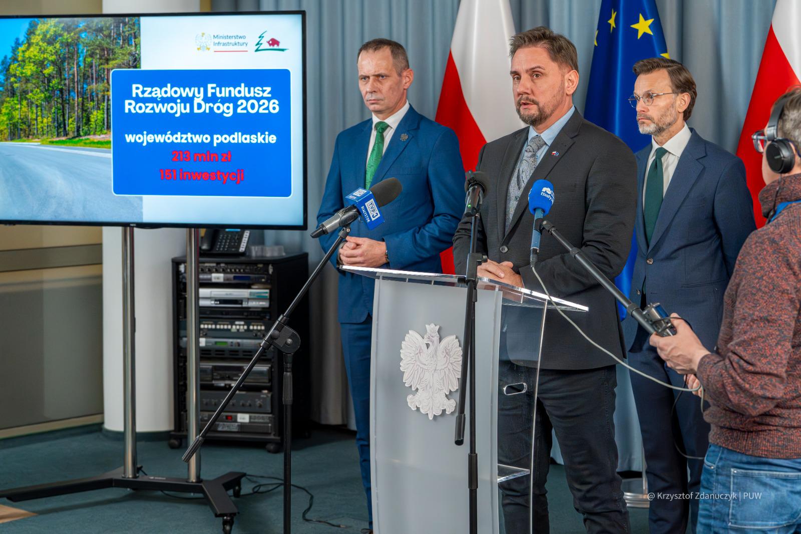 213 mln zł z Rządowego Funduszu Rozwoju Dróg 2026 dla podlaskich samorządów