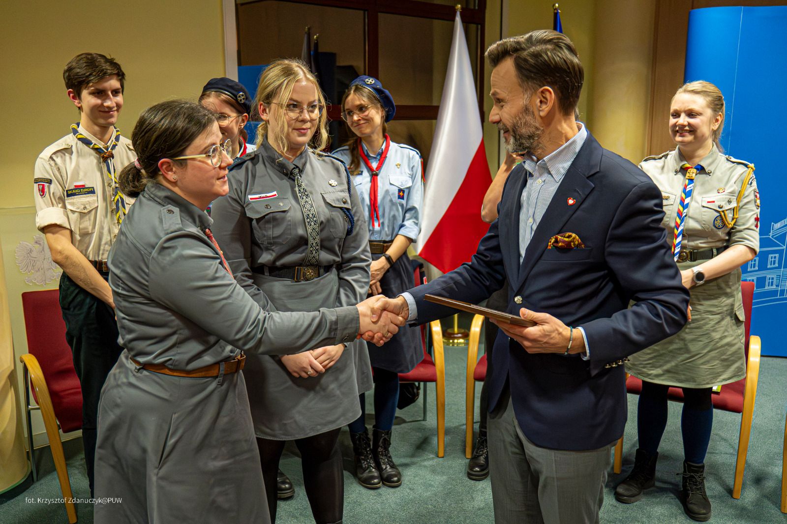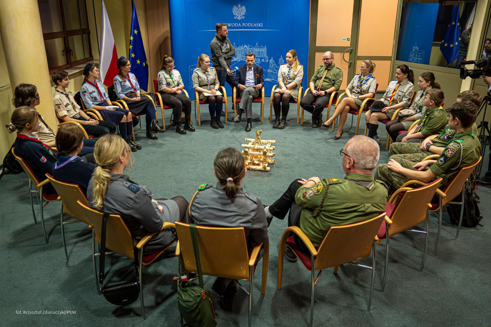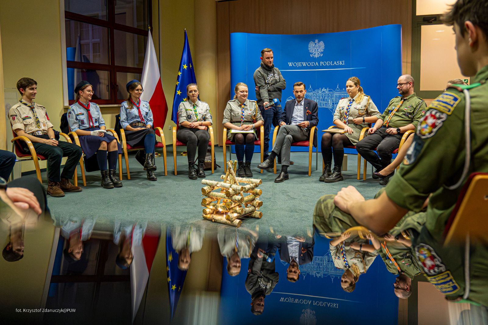 Na zaproszenie wojewody w spotkaniu w Podlaskim Urzędzie Wojewódzkim wzięli udział harcerki i harcerze z Białostockiej Chorągwi ZHP, Białostockiego Hufca Harcerek "Prześwit" ZHR oraz Skauci Europy w Białymstoku.