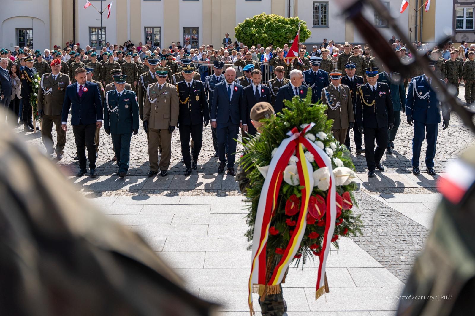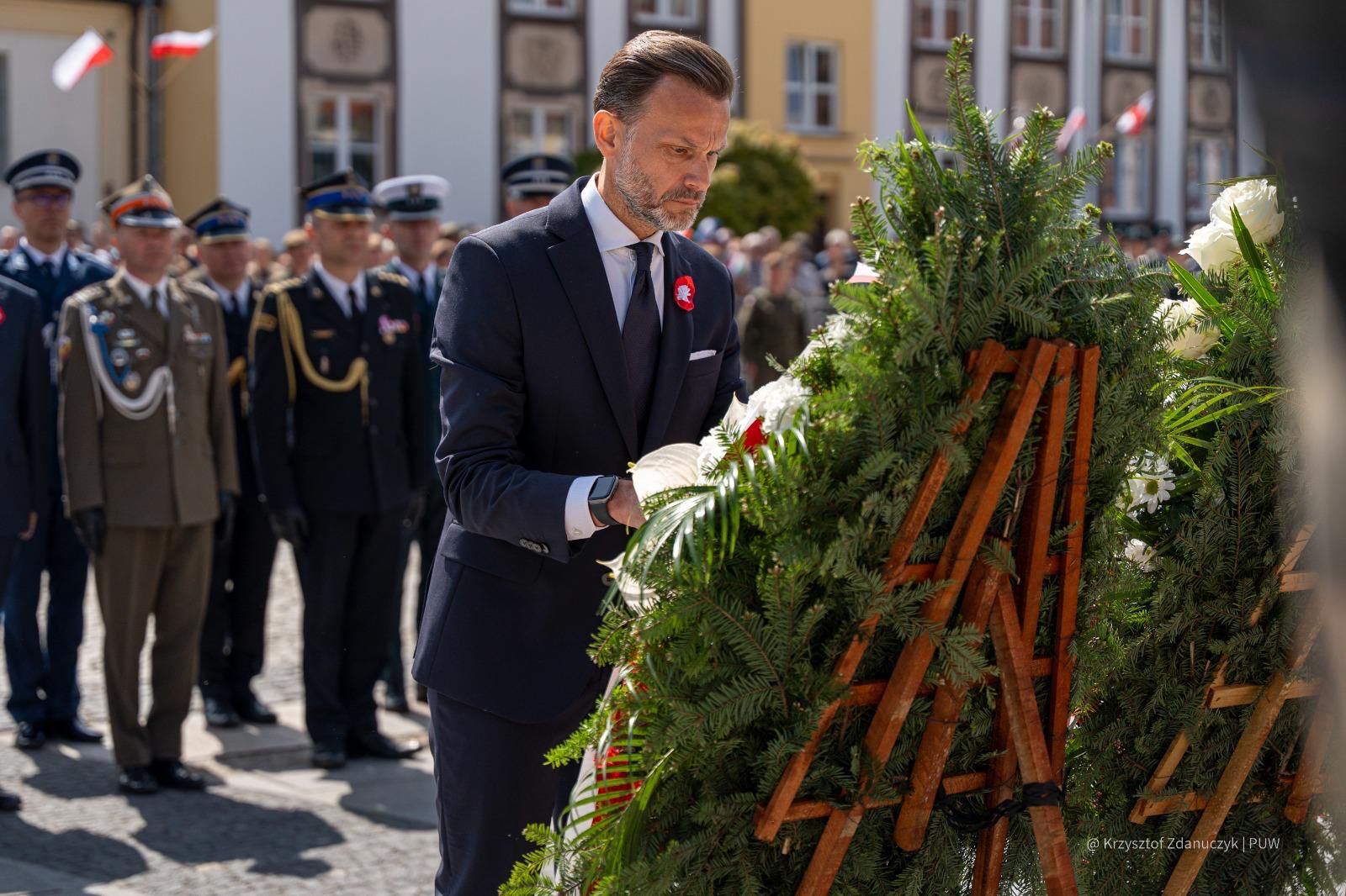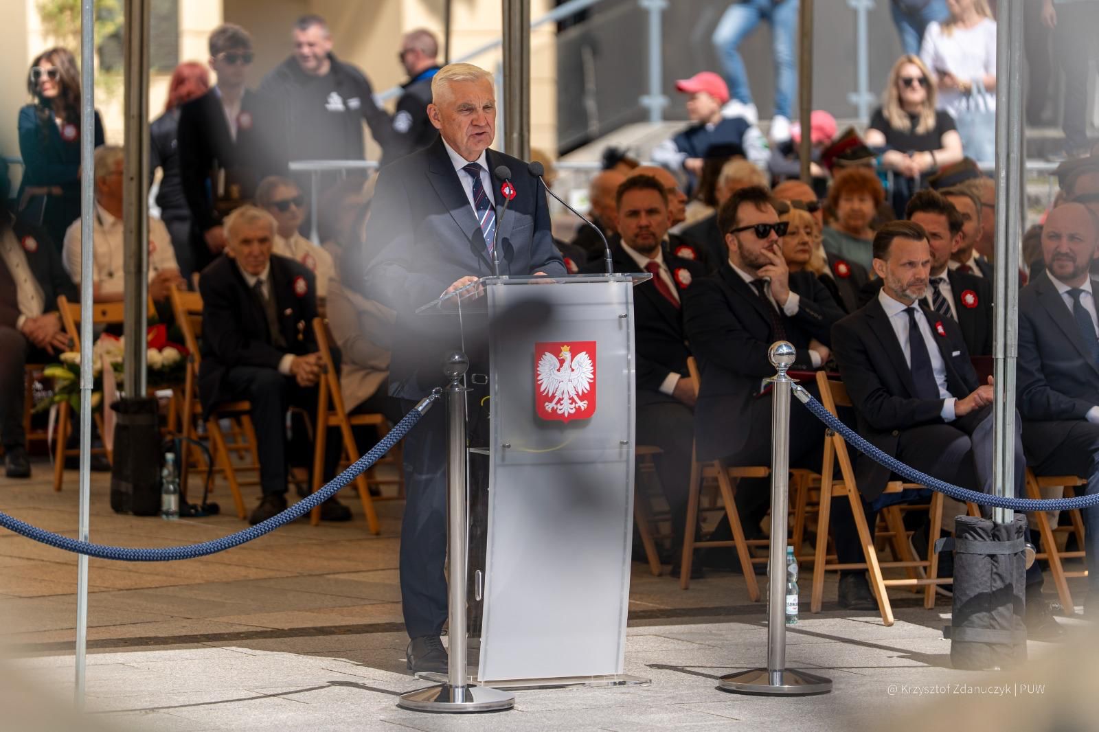 - mówił. Wojewoda Jacek Brzozowski podkreślił, że uroczystość z okazji 3 Maja to także doskonała okazja do wyrażenia wdzięczności wszystkim, którzy dbają o bezpieczeństwo Polaków: przywołał żołnierzy Wojska Polskiego, funkcjonariuszy Straży Granicznej czy Policji, którzy strzegą granic, a także strażaków PSP i OSP, którzy przez 11 dni gasili pożar w Biebrzańskim Parku Narodowym.