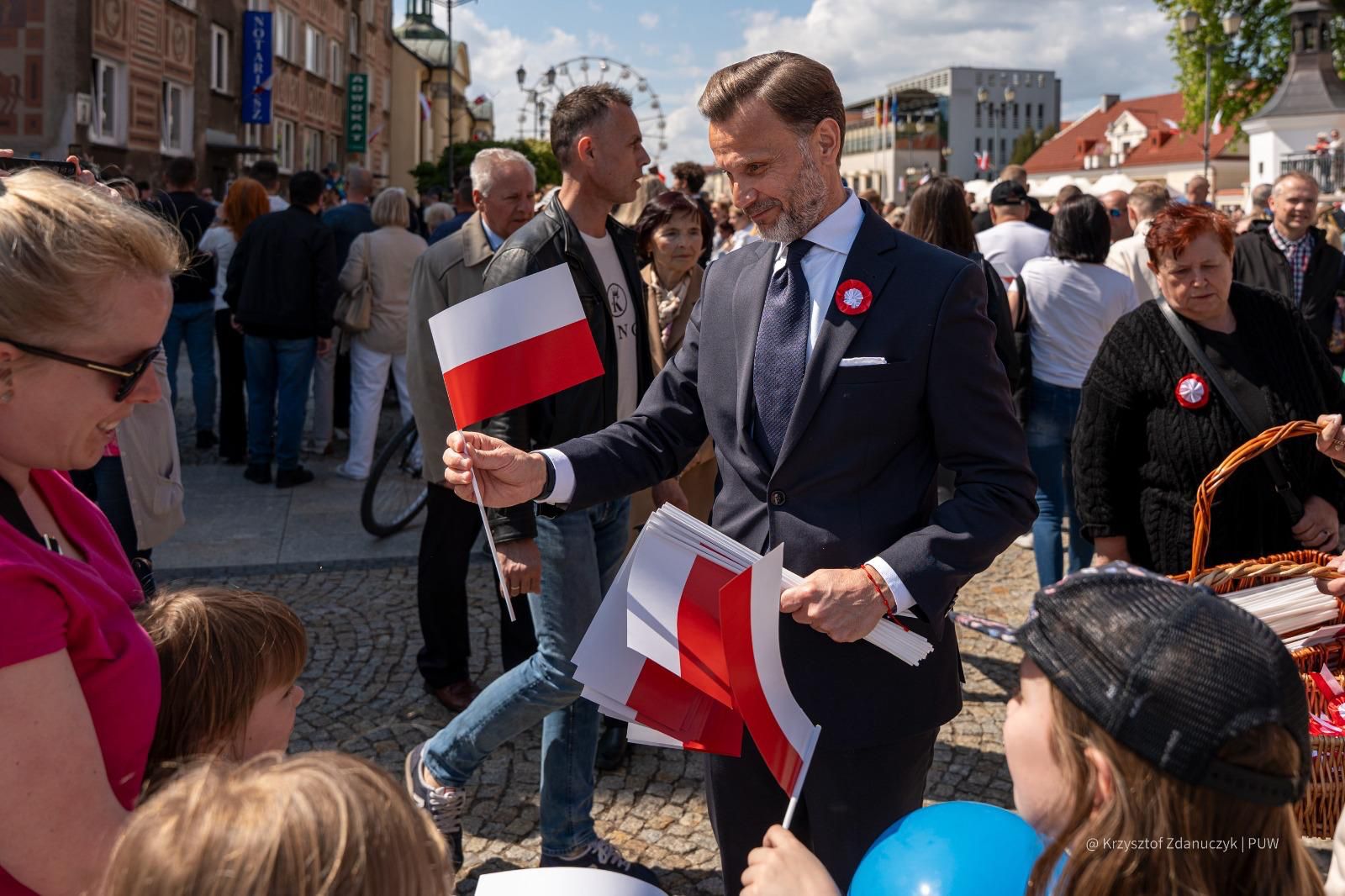 - Nikt chyba nie ma wątpliwości, że to jeden z symboli niepodległej Rzeczpospolitej. Konstytucja 3 Maja to nie tylko prawo, ona mówi nam o tym, co my - naród - uważamy za najistotniejsze, jakie są nasze ambicje i ideały. (...) Polskim priorytetem była i jest wolność - mówił wojewoda podlaski Jacek Brzozowski podczas wojewódzkich obchodów rocznicy uchwalenia Konstytucji 3 Maja, które odbyły się na Rynku Kościuszki w Białymstoku.