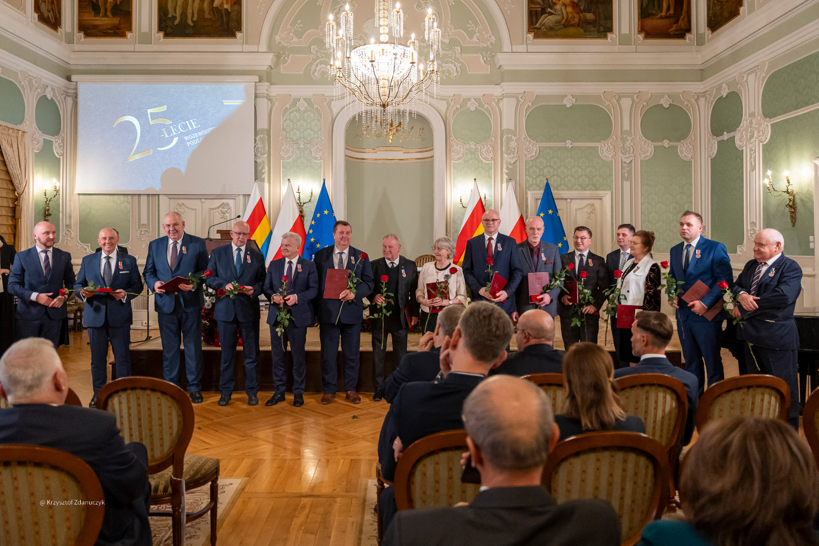 Ważną częścią uroczystości było uhonorowanie osób, które w sposób szczególny zasłużyły się podlaskiej samorządności. Marszałek województwa Łukasz Prokorym wręczył Odznakę Honorową Województwa Podlaskiego za całokształt działalności publicznej, społecznej i zawodowej na rzecz rozwoju województwa radnym, którzy w Sejmiku działali przez cztery, pięć, a nawet siedem kadencji: