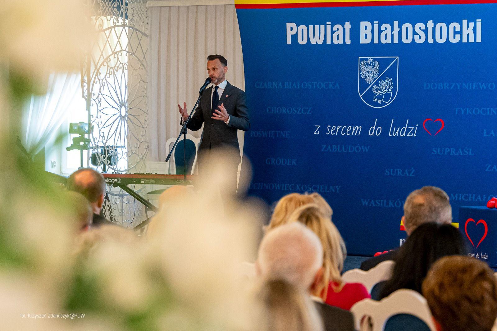 Największy powiat w Polsce - białostocki - świętował w czwartek (11.04) 25-lecie istnienia. Samorządowcy, pracownicy jednostek organizacyjnych powiatu oraz radni uroczyście podsumowali ćwierć wieku działalności. Jubileuszu pogratulował powiatowi wojewoda podlaski Jacek Brzozowski, który wręczył również odznaczenia państwowe.