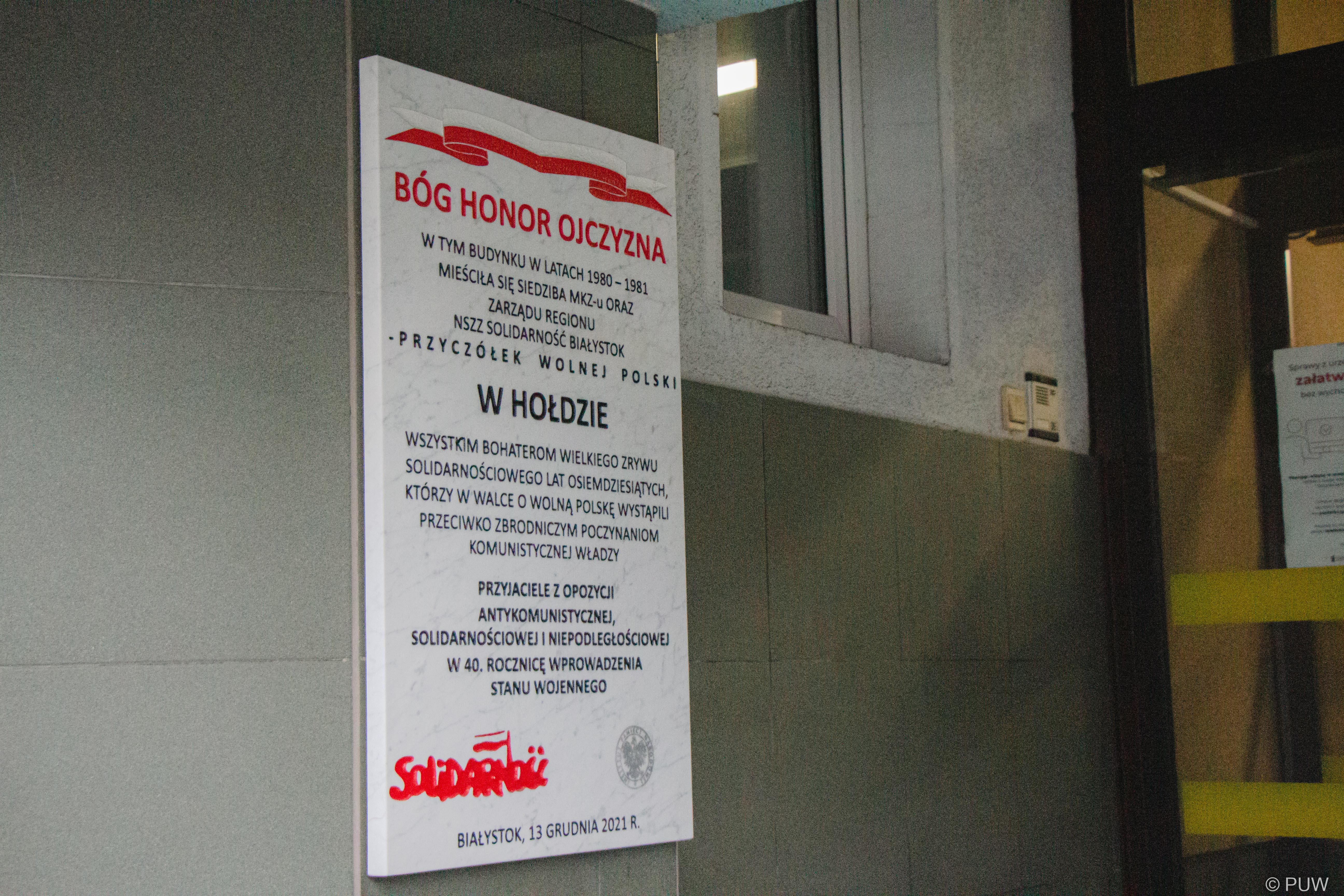Wprowadzony 13 grudnia 1981 r. stan wojenny jest jednym z najtragiczniejszych wydarzeń we współczesnej historii Polski. Skutkował internowaniem ponad 10 tysięcy działaczy opozycji antykomunistycznej, tysiące kolejnych było inwigilowanych i zastraszanych. W hołdzie walczącym o wolną Polskę wojewoda podlaski Bohdan Paszkowski oraz wicewojewodowie: Tomasz Madras i Bogusława Szczerbińska złożyli kwiaty w miejscach związanych z wydarzeniami sprzed ponad 40 lat oraz wzięli udział w uroczystości zorganizowanej przez Klub Więzionych, Internowanych i Represjonowanych.