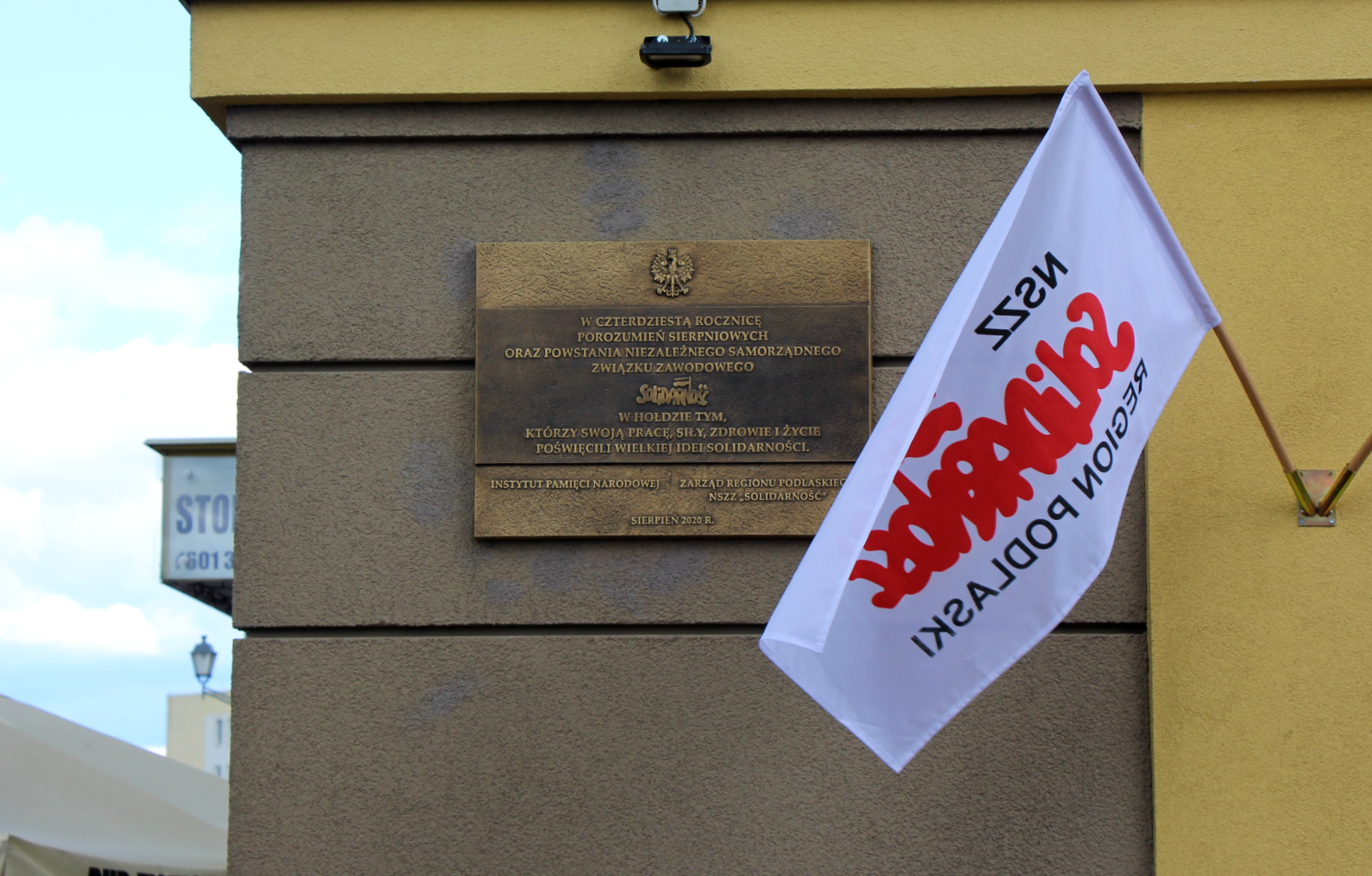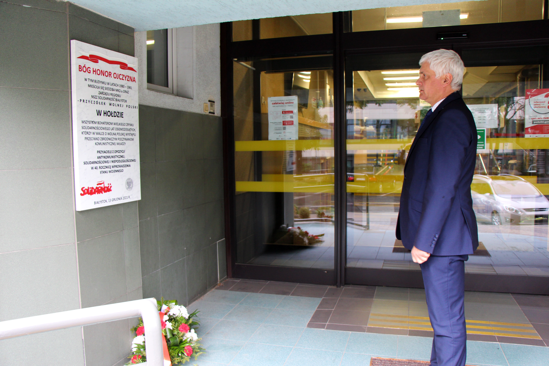 Wojewoda podlaski uczcił rocznicę Porozumień Sierpniowych, składając także kwiaty przy Tablicy Solidarności na budynku Urzędu Skarbowego w Białymstoku, gdzie w latach 1980-1981 mieściła się siedziba - najpierw Międzyzakładowego Komitetu Założycielskiego, a potem zarządu Regionu NSZZ Solidarność Białystok oraz na grobie ks. Stanisława Suchowolca - kapelana białostockiej "Solidarności".