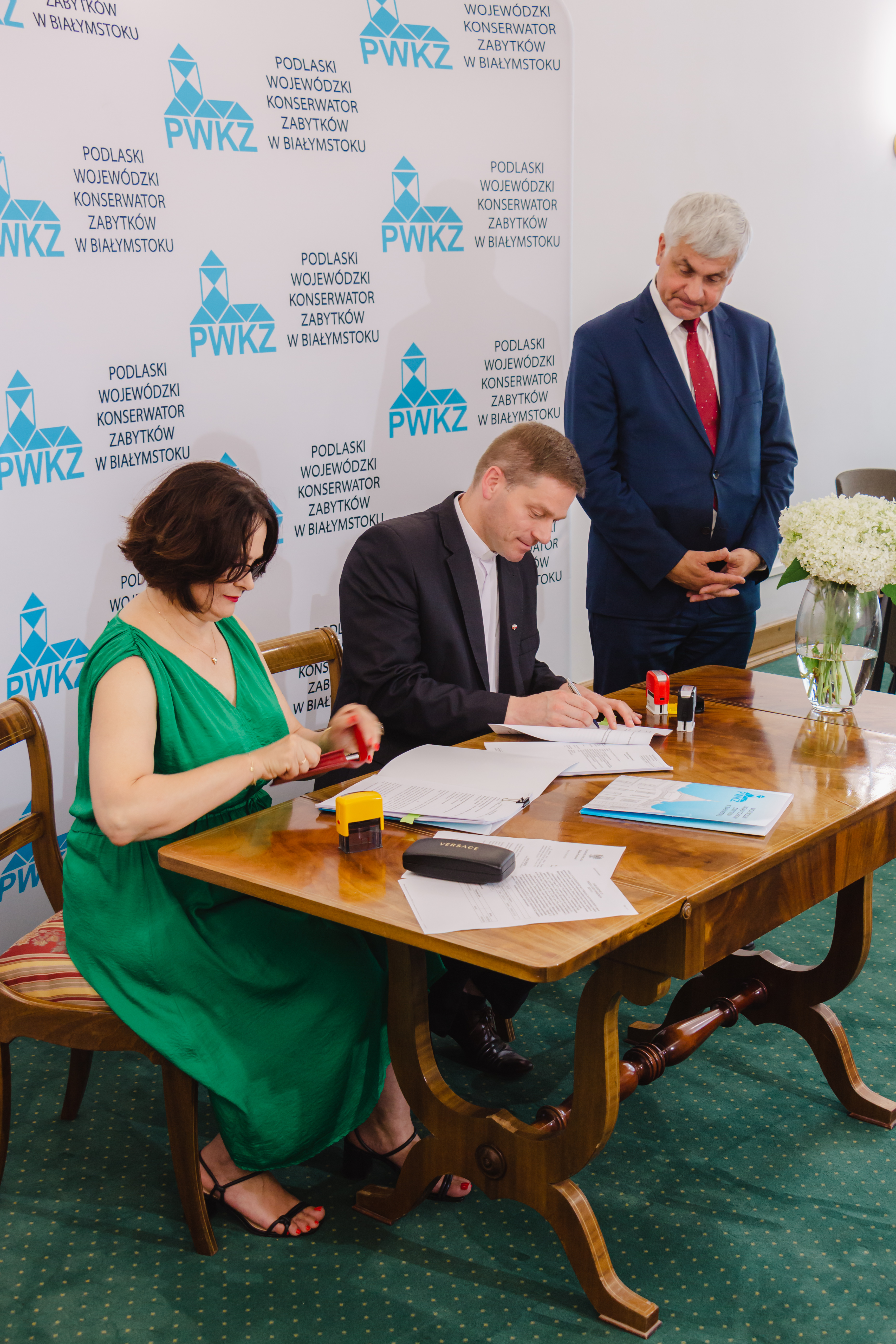 5 mln zł z rezerwy budżetu państwa dostała parafia w Wigrach - dotacja pozwoli na kolejny remont zabytkowego klasztoru. Tym razem modernizację przejdą eremy tarasu dolnego i mur oporowy klasztoru. Umowę w tej sprawie podpisali w poniedziałek (4.07), w obecności wojewody podlaskiego, podlaski wojewódzki konserwator zabytków prof. Małgorzata Dajnowicz i proboszcz parafii pw. Niepokalanego Poczęcia Najświętszej Maryi Panny w Wigrach ks. kan. dr Jacek Nogowski.